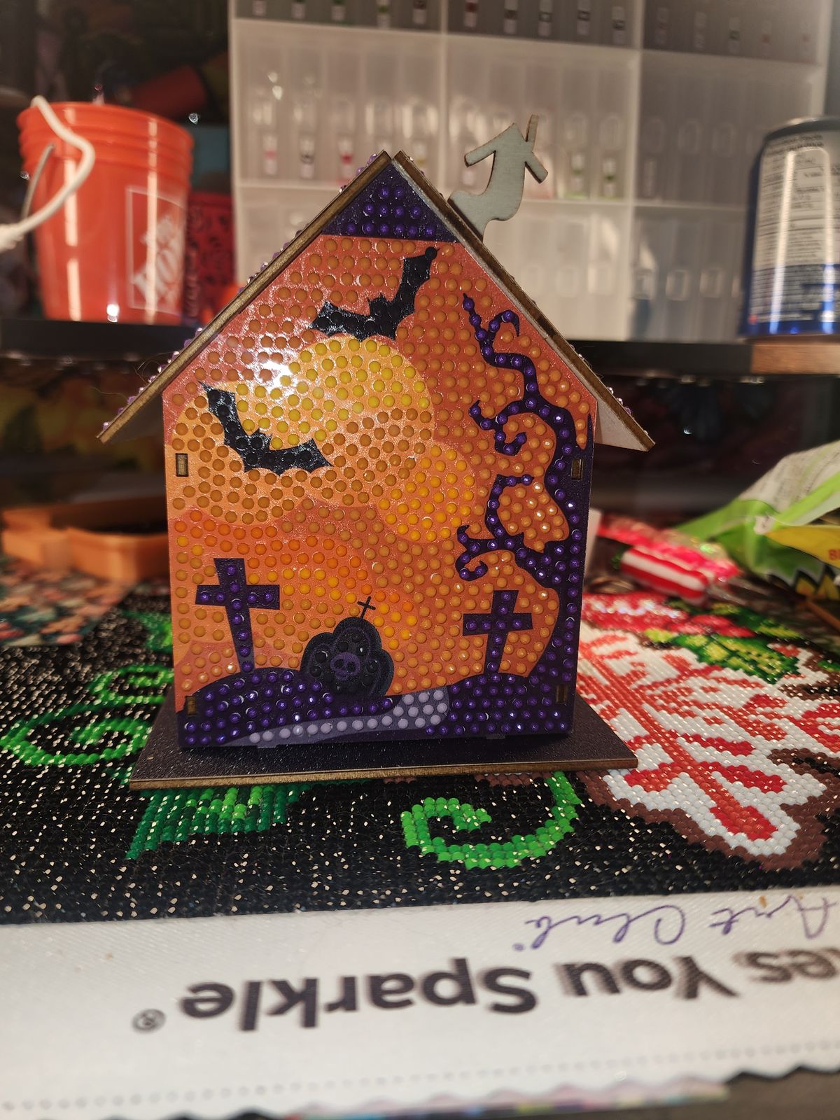 This little gem of a haunted house brings lots of shine! So fun and quick to complete! I agree with other reviewers that the back of the chimney needs black paint to make it completed.