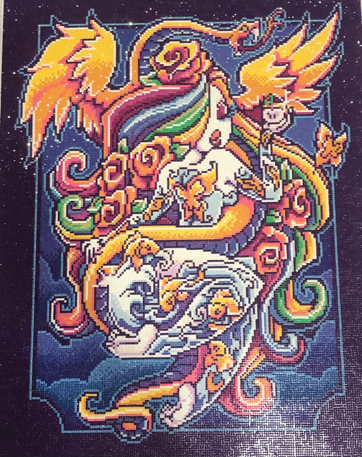 This was absolutely amazing to finish. Another one with lots of same color border which works fast with a multiplacer. I love Jehsee's artistic perspective with the brilliance of bright and bold colors that help bring the canvas to life. Looking forward to more from this artist.