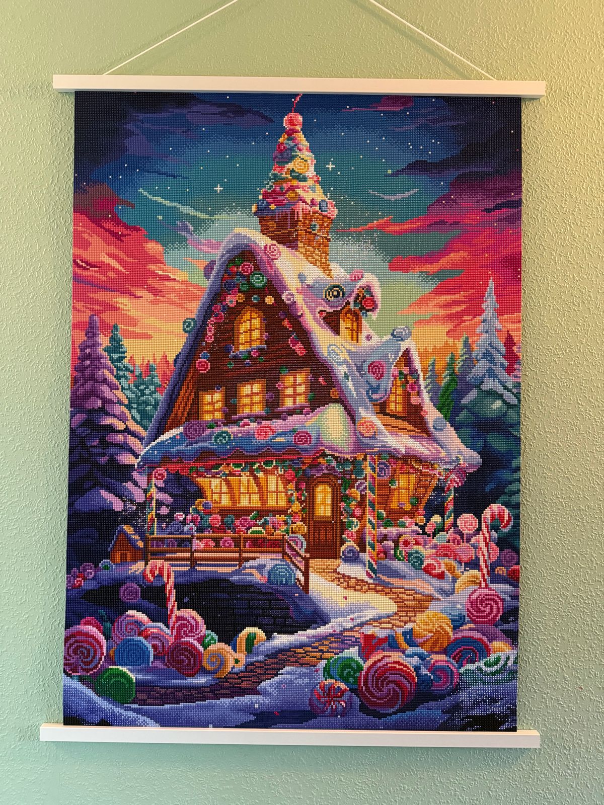 I absolutely loved doing Gingerbread Chalet. It had just the right amount of confetti. The colors are gorgeous and bright.I never got bored. Everyday I looked forward to working on it. It took me 4.5 months(just about everyday) to complete this. It is very big!!!!
