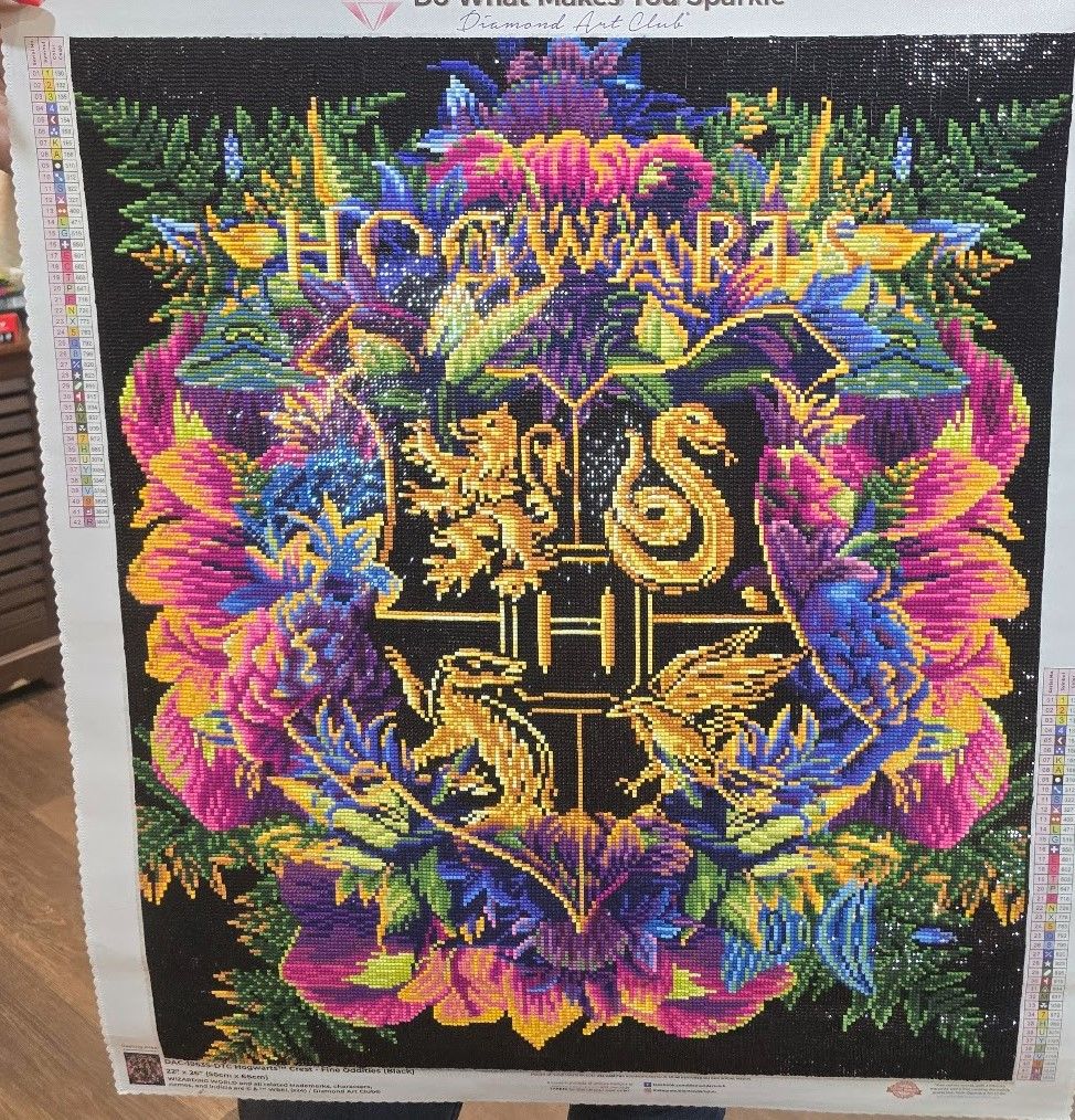 loved! this was my 1st square project & i enjoyed it immensely. the finished product is beautiful & worth the tediousness of all the black drills (hard on the eyes).