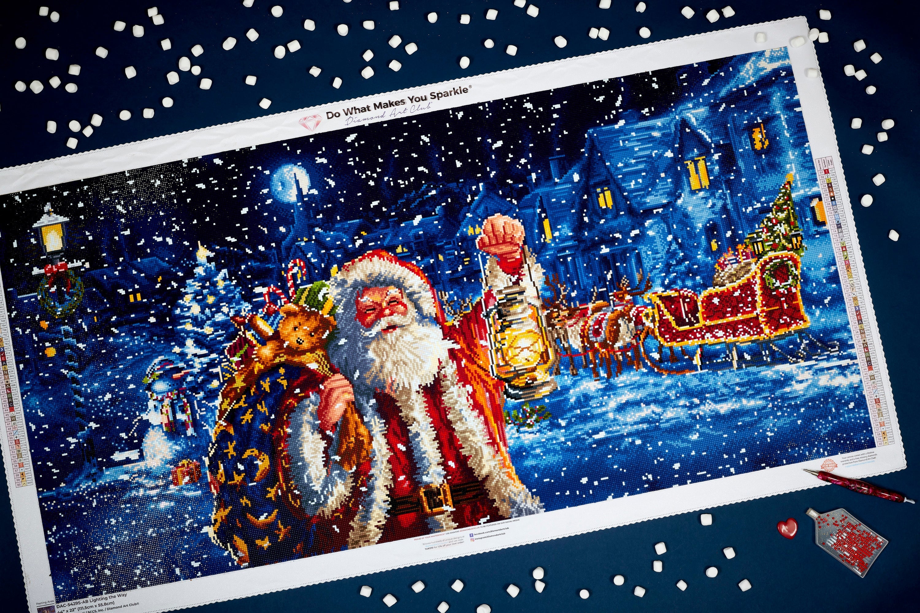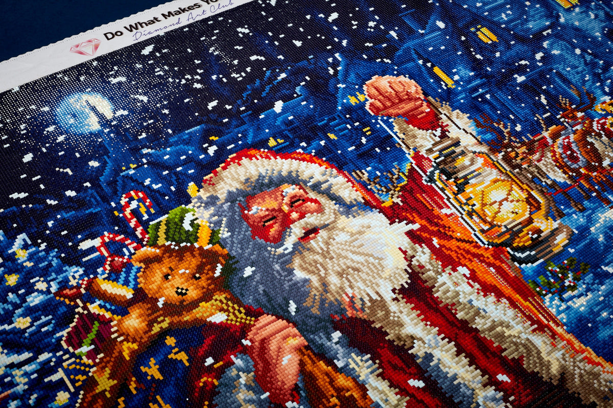 Received just before Halloween so busy working on it for Christmas- as always a super put together kit- I have ventured off and ordered from other sites and the products were just horrible- nothing lined up- drills were all mis-shapened making the whole picture difficult- crummy packaging- box even dirty like it had been stored in some basement- learned my lesson!!! Diamond Art Club ONLY- its the cadilac of diamond art kits-
