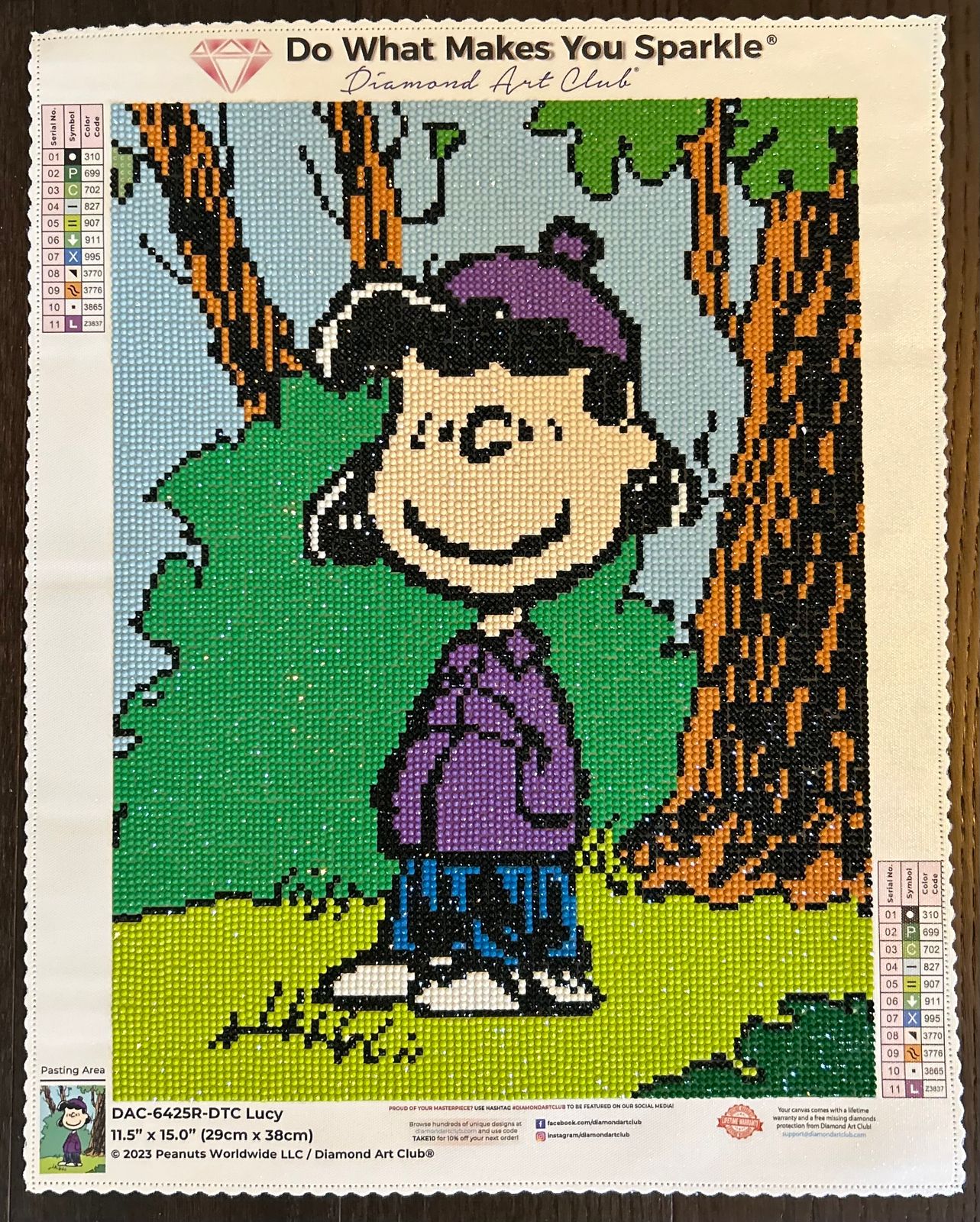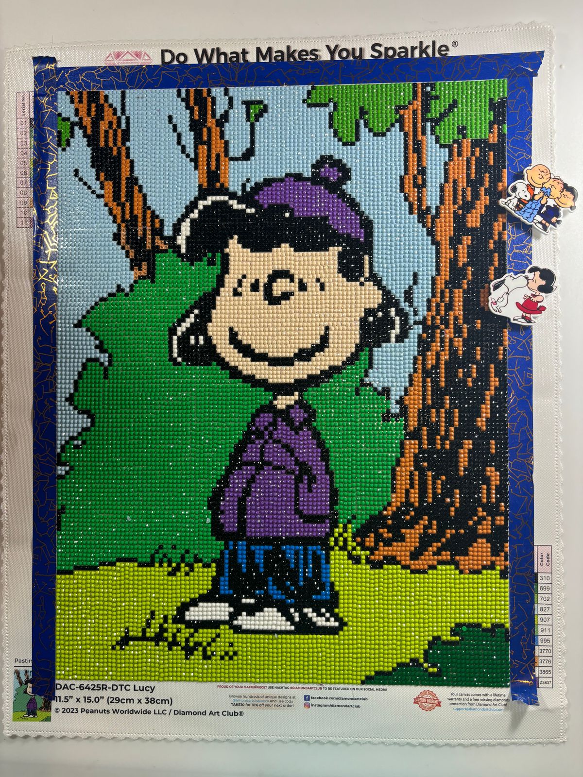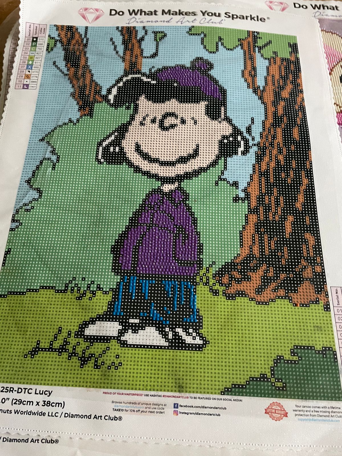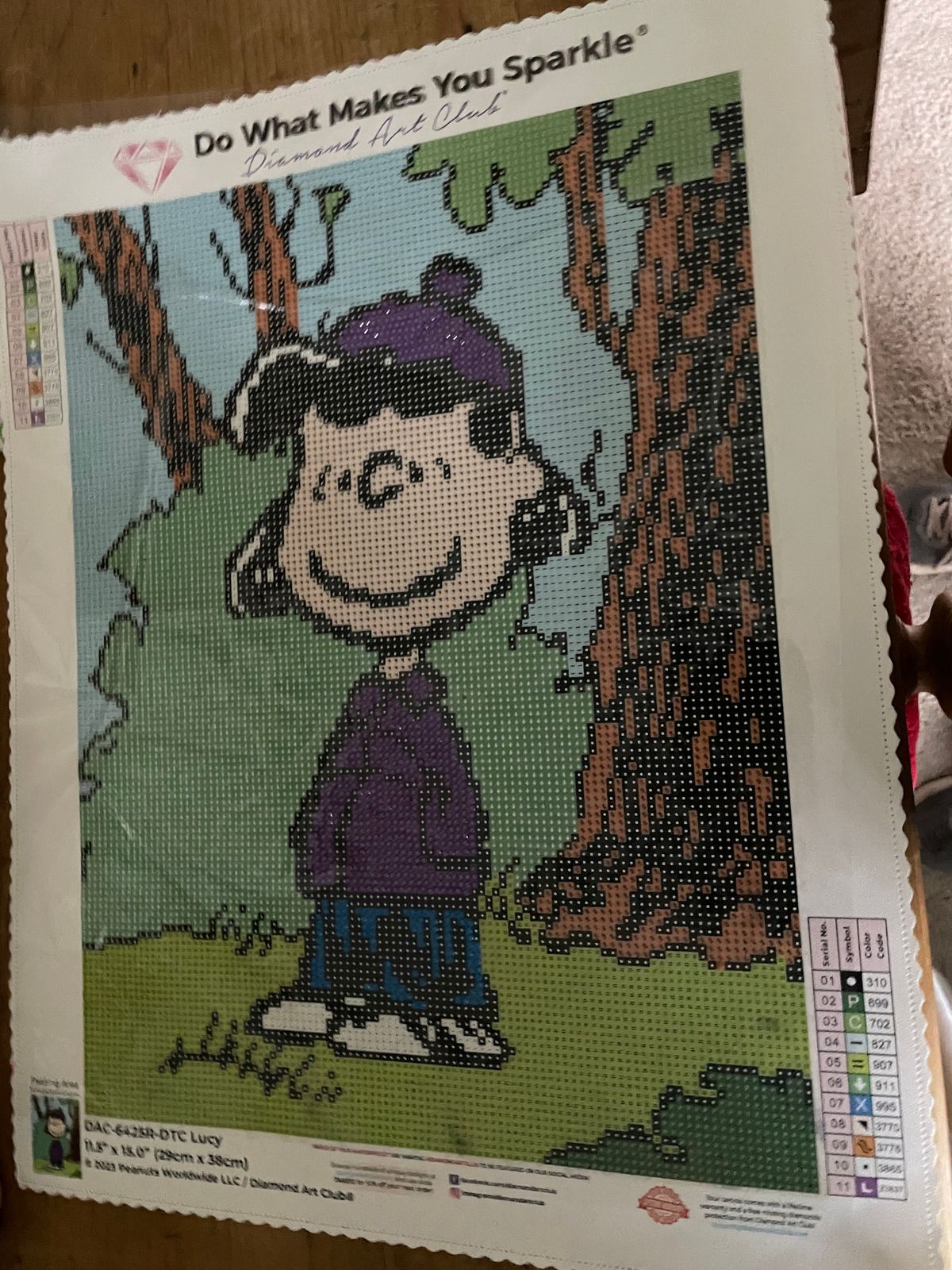 For Christmas 2024, my 9 year old granddaughter asked for "papa art". Being the good grandpa that I am .. LOL...and because her mother likes Peanuts, I bought her several Peanuts character kits, as well as a unicorn kit, because she really likes unicorns! She stays overnight with me most Sundays. We started December 29, 2024 on Lucy. At first she was enthusiastic. The goal was to get several done for her mother's birthday in late March. But then the enthusiasm waned. Next goal Mother's Day! Then a couple of weeks ago she said, "Papa, I like to watch you diamond art for a little, but I really don't enjoy it." So now the agreement is, papa will work on them on Sunday while she is with me, and she will either watch me or Netflix! Finished Lucy today, June 2, 2025. Next is Charlie Brown, and then hopefully Snoopy for her father's birthday in late July. By the way, she turned 10 in April.