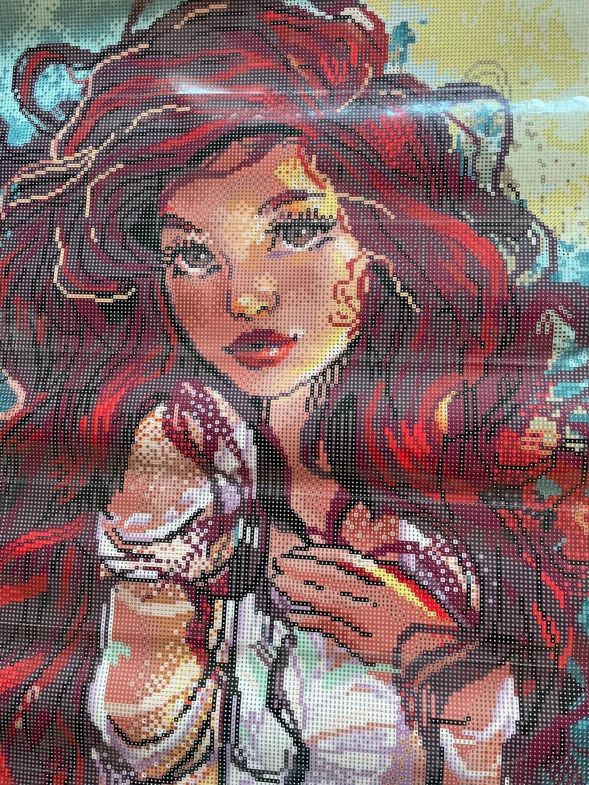The usual quality is there great canvas, drills, packaging. But the rendering is amazing! I love how her hair looks with all the shades of red!