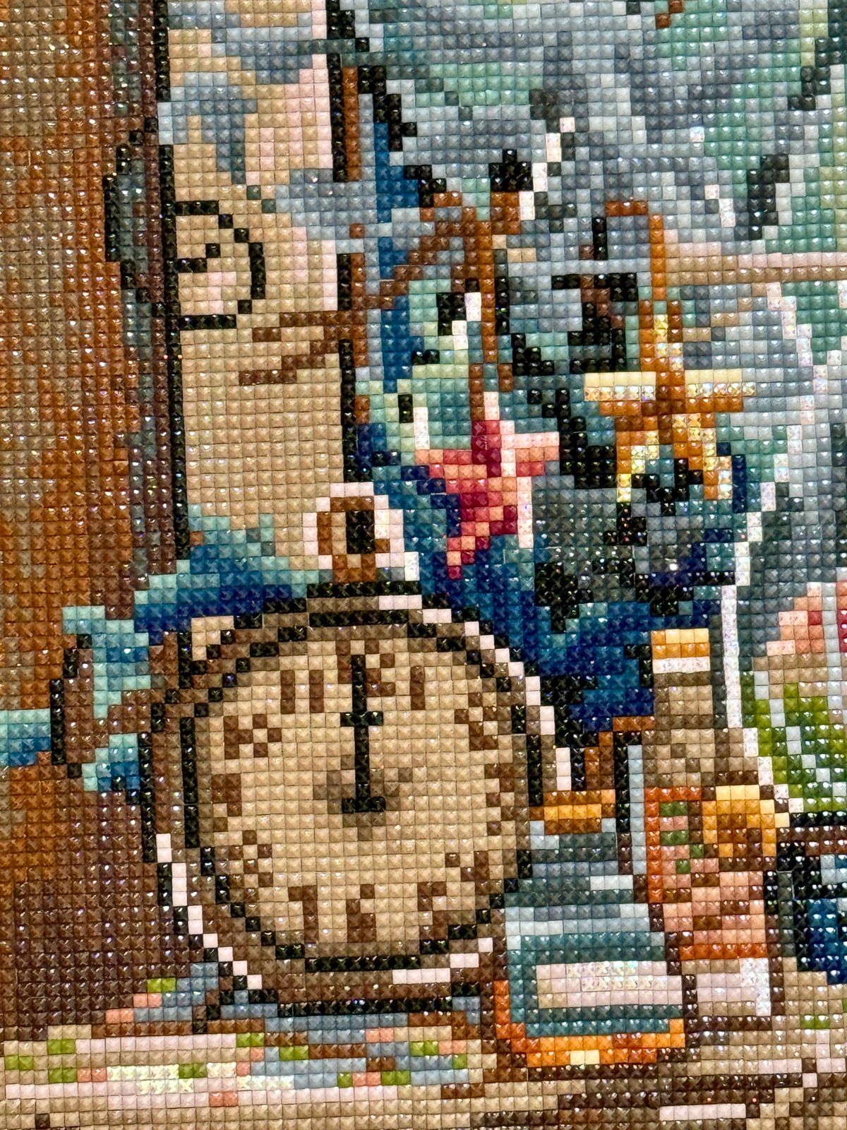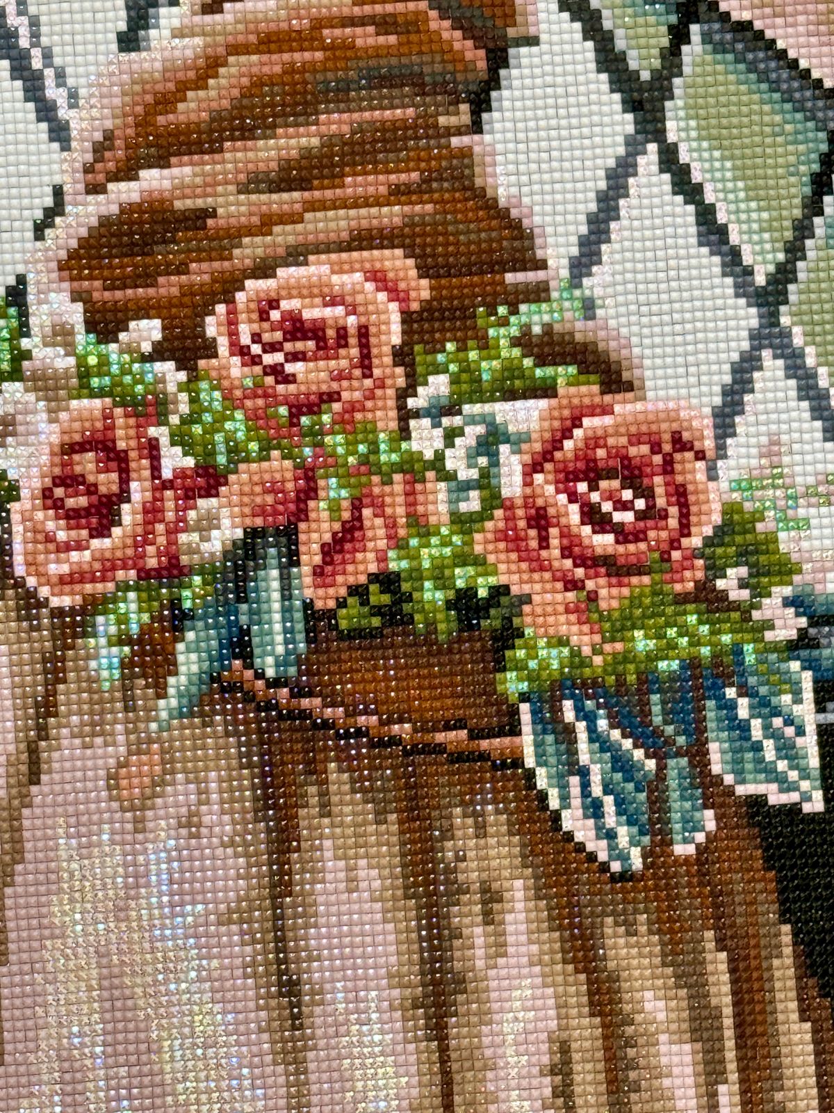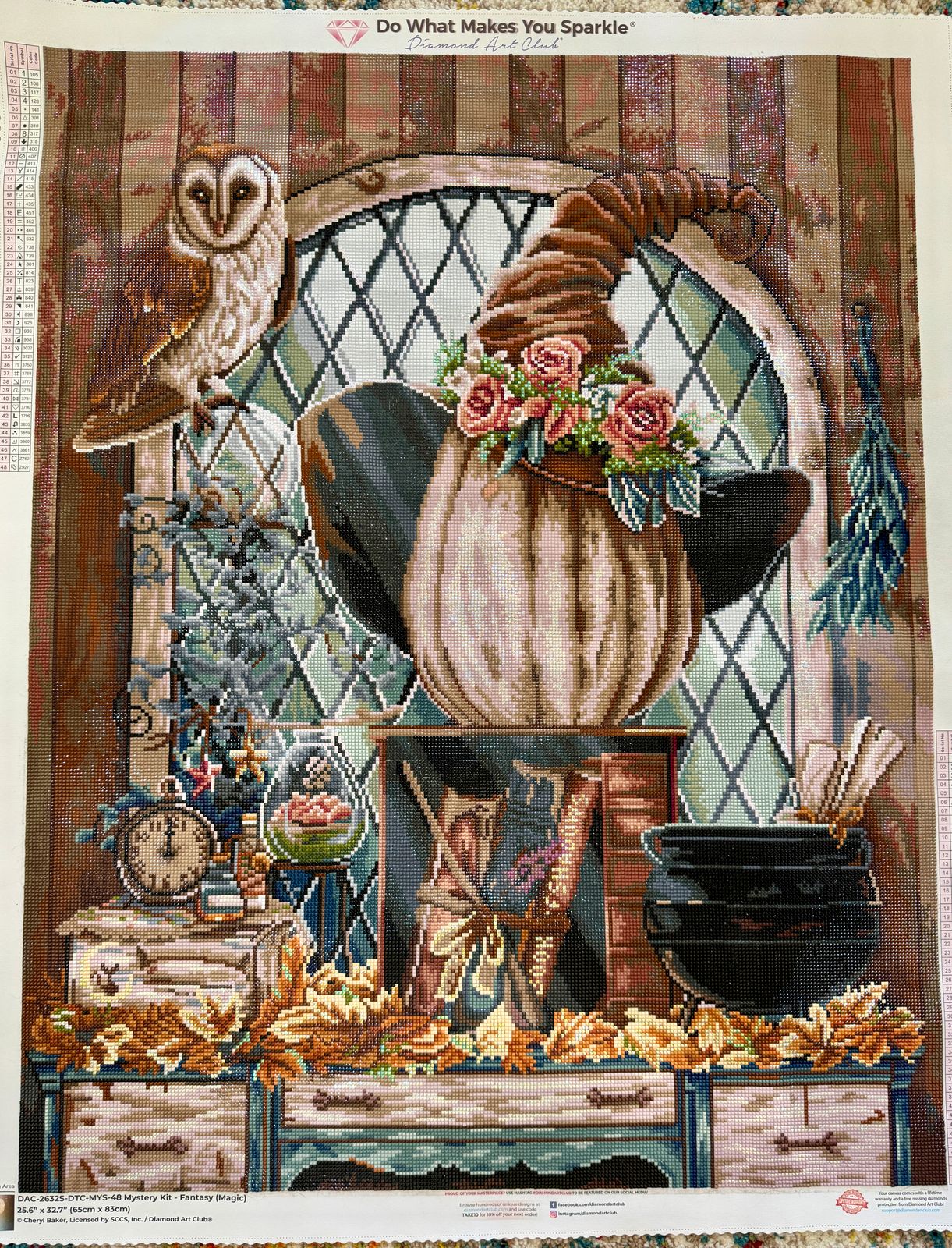It turned out great. I had plenty of drills left. The picture was easy to do as this was my first DAC mystery kit I worked up that is in my stash. I recommend mystery kits as a change from the regular Diamond painting. It took me 24 days. I worked 21 hours and 5 days in May. Then in June I worked 18 days for a total of 84.30 hours. So a grand total of 105.30 hours. I worked exclusively on this picture during my diamond painting sessions.