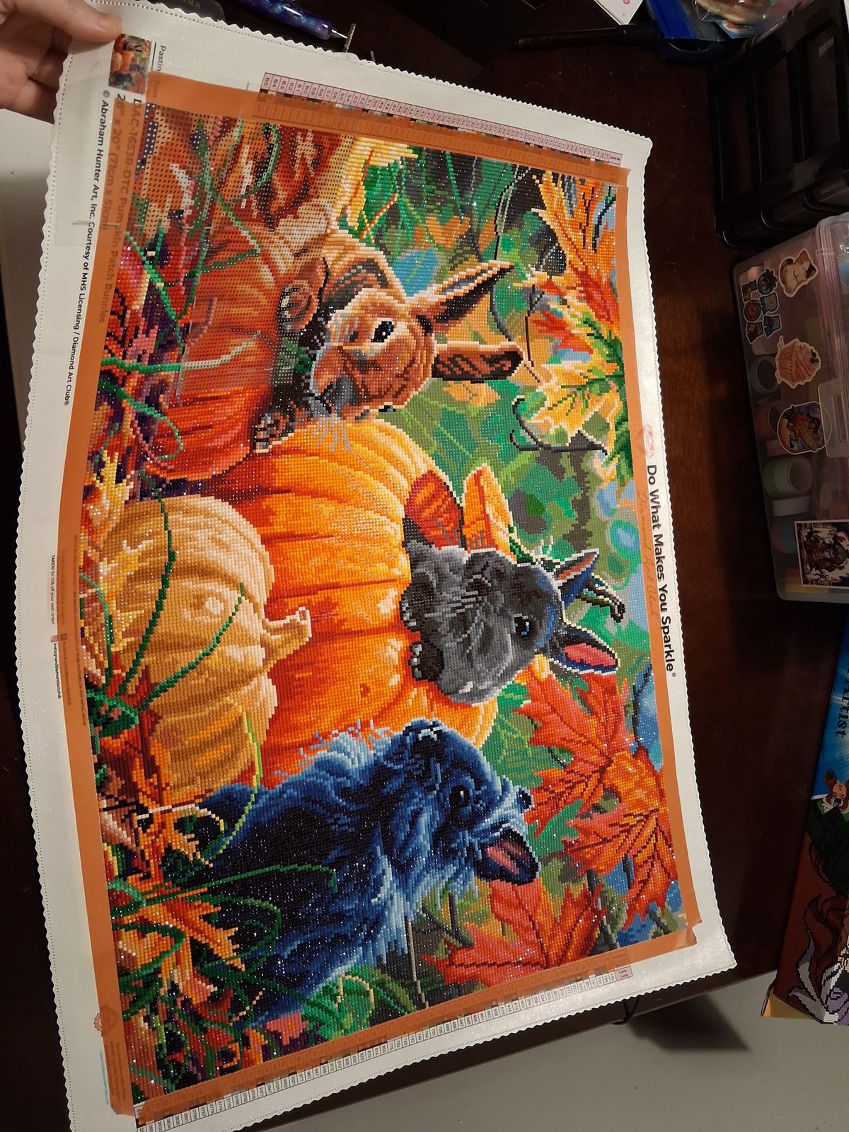 This is an amazing piece to work on for anyone who loves pumpkins or bunnies! Definitely one of my favourite pieces and the drill and canvas quality is unmatched!