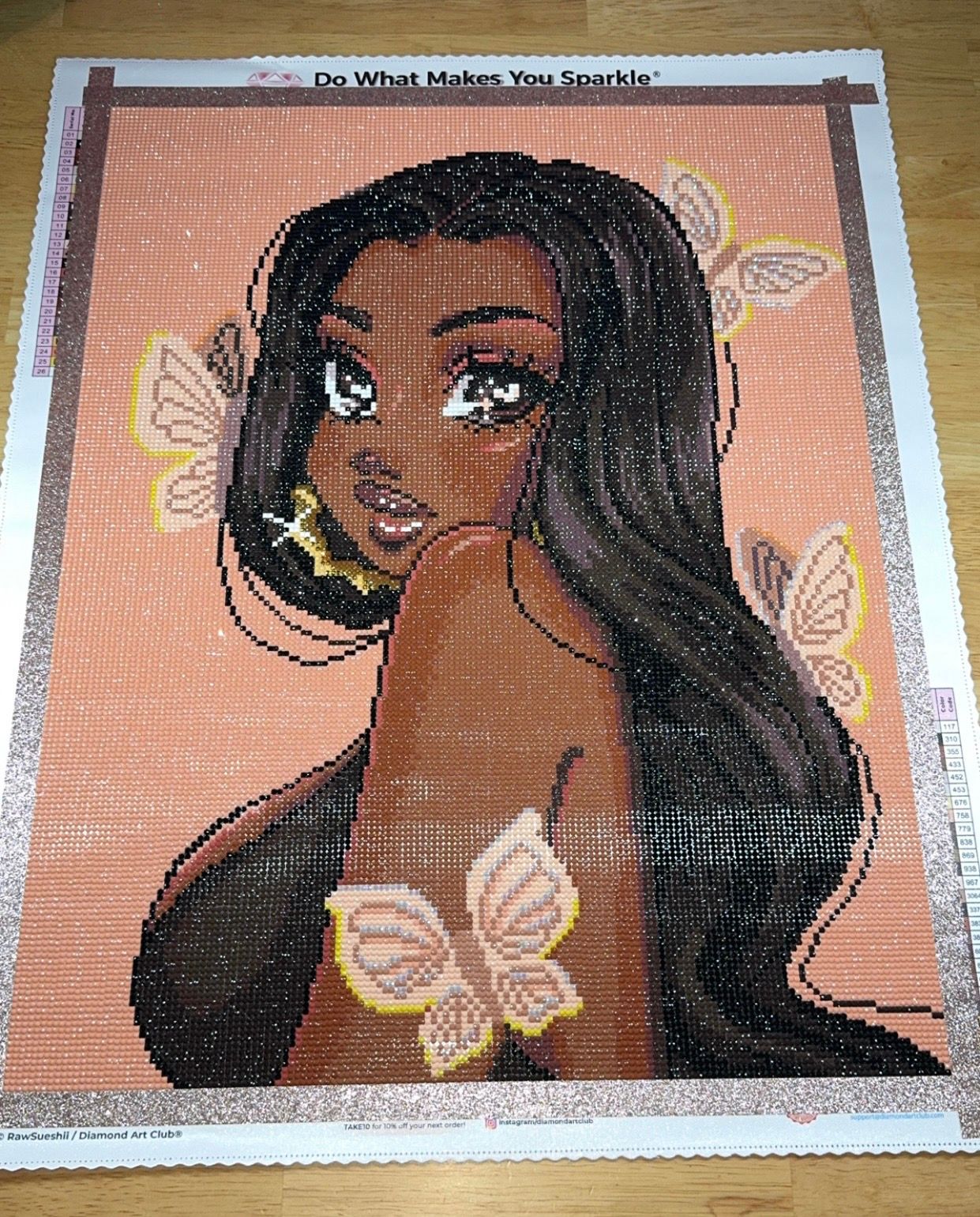 Diamond Painting Shea Butterfly Babe 16.5" x 21.5" (41.8cm x 54.8cm) / Round with 26 Colors including 1 AB and 1 Electro Diamond and 3 Fairy Dust Diamonds / 30,248