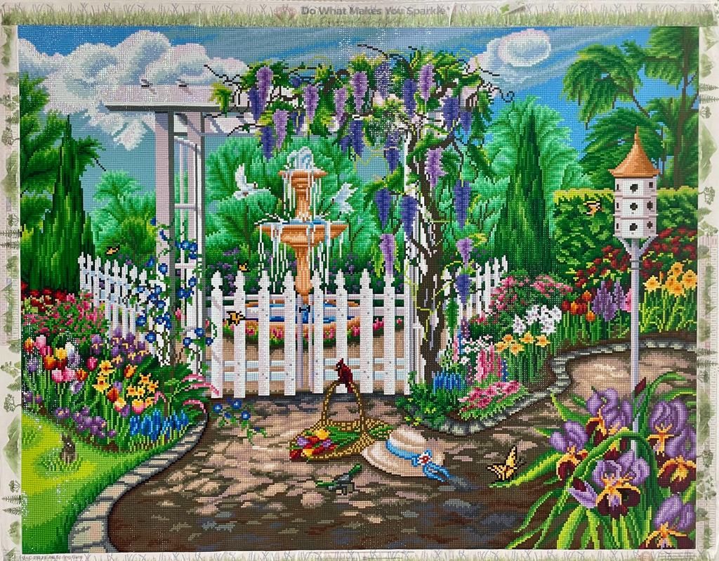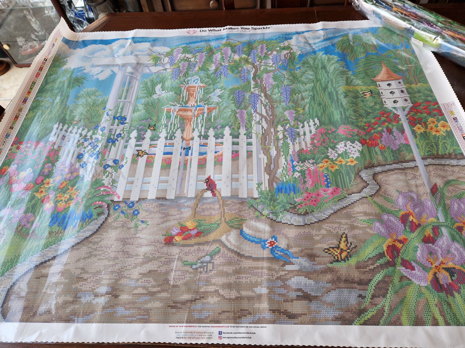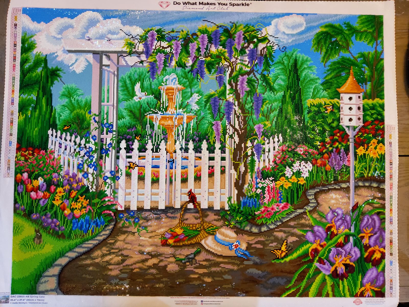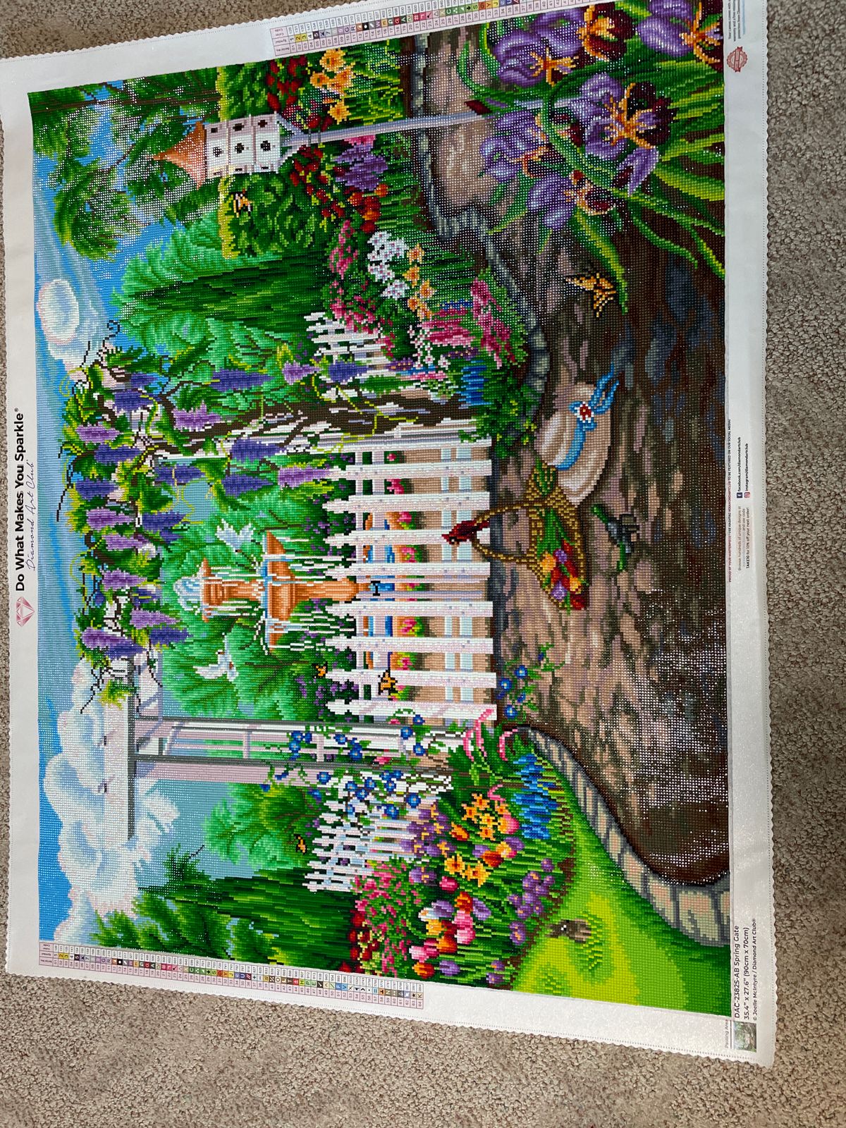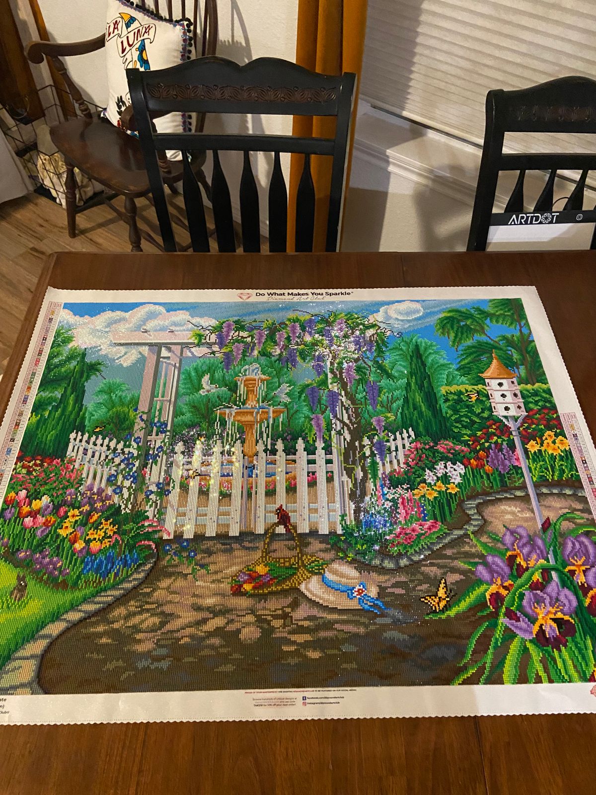 This had beautiful colors and I really enjoyed doing it But I would have to say that the details are not as good and clear as all the other DAC I’ve done. The garden tools ended up looking like a green long leg bug so after I placed the drills and realized it I ended up removing them all together. It photographs well but in person the details are a little blurred. Kit had all the drills and the 4 AB drills were surprisingly easy to place .