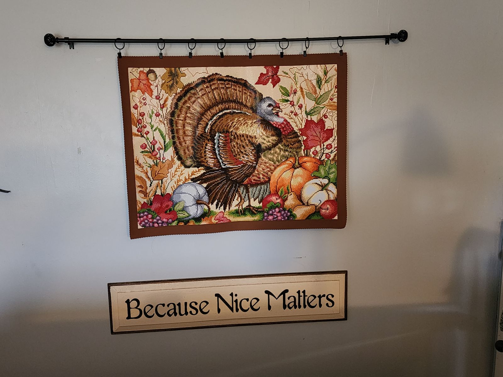 This was a beautiful kit. I enjoyed working on it for Thanksgiving. I proudly displayed it in my entry way for the holiday.