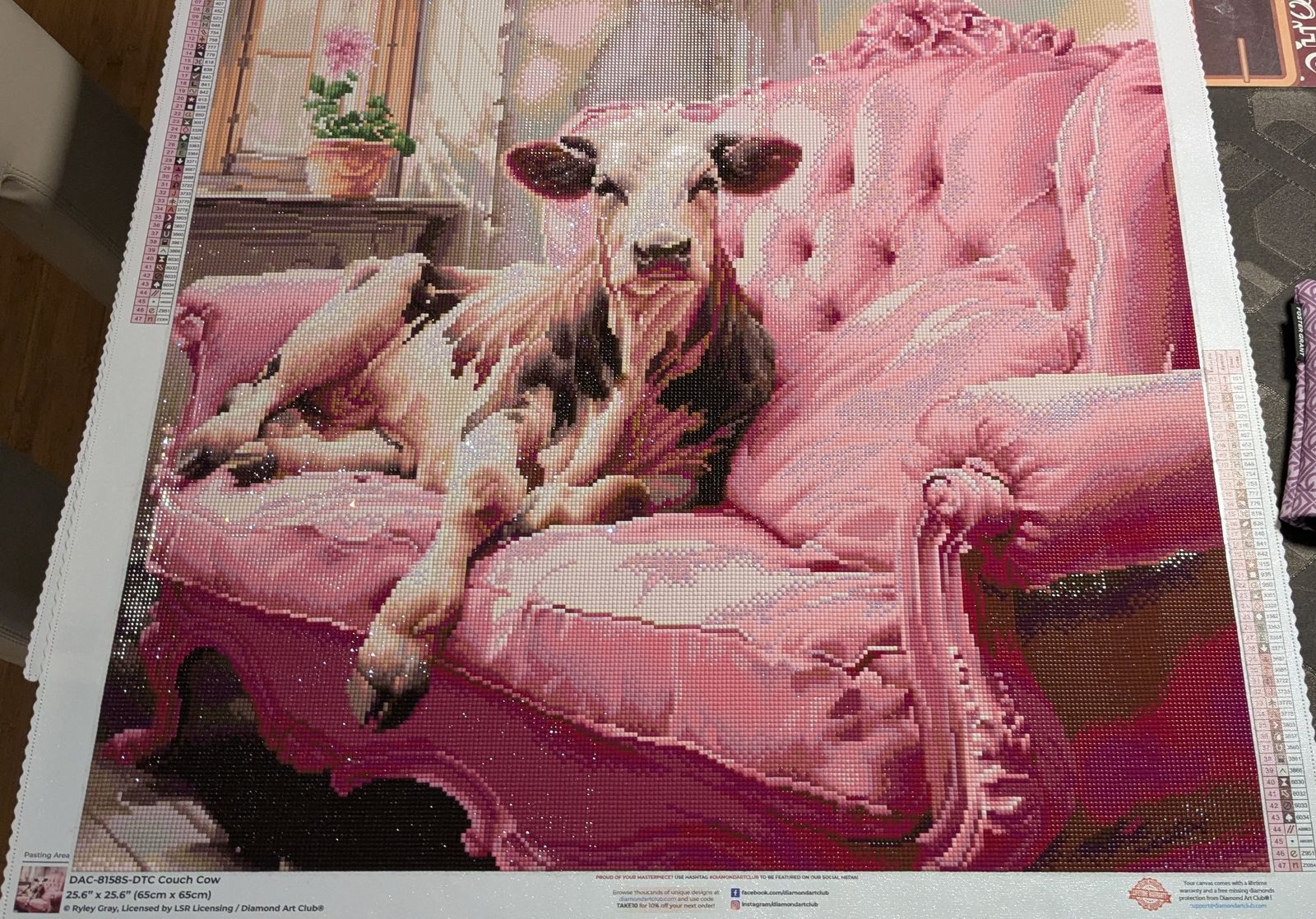 Diamond Painting Couch Cow 25.6" x 25.6" (65cm x 65cm) / Square with 47 Colors including 2 ABs and 2 Fairy Dust Diamonds / 68,121