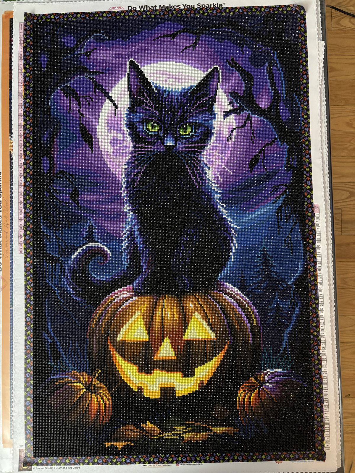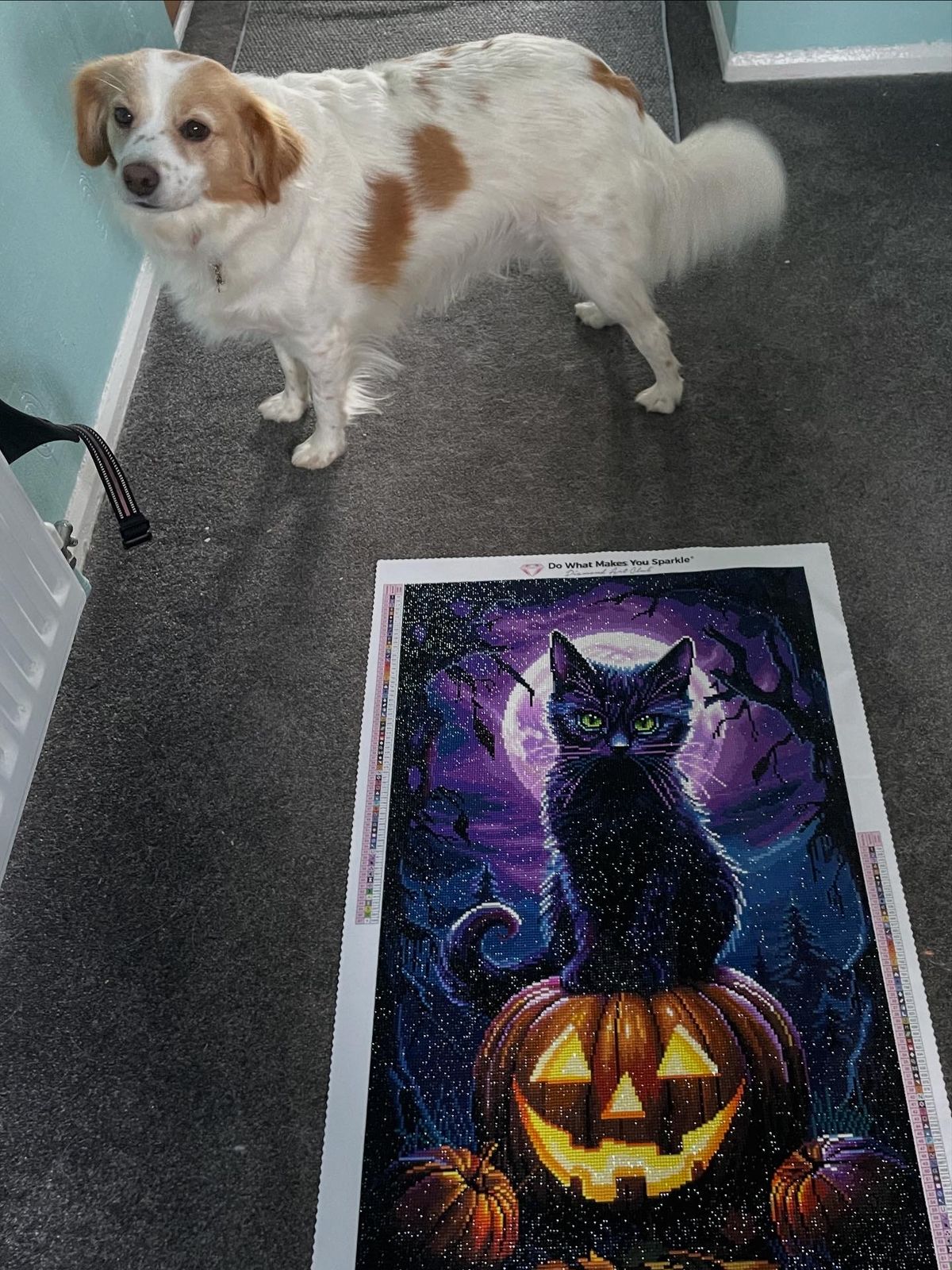 Really beautiful purples & loved the colours in the jack-o’-lantern to make it look like it is glowing. A great experience as always with Diamond Art Club. Even our dog approves ❤️