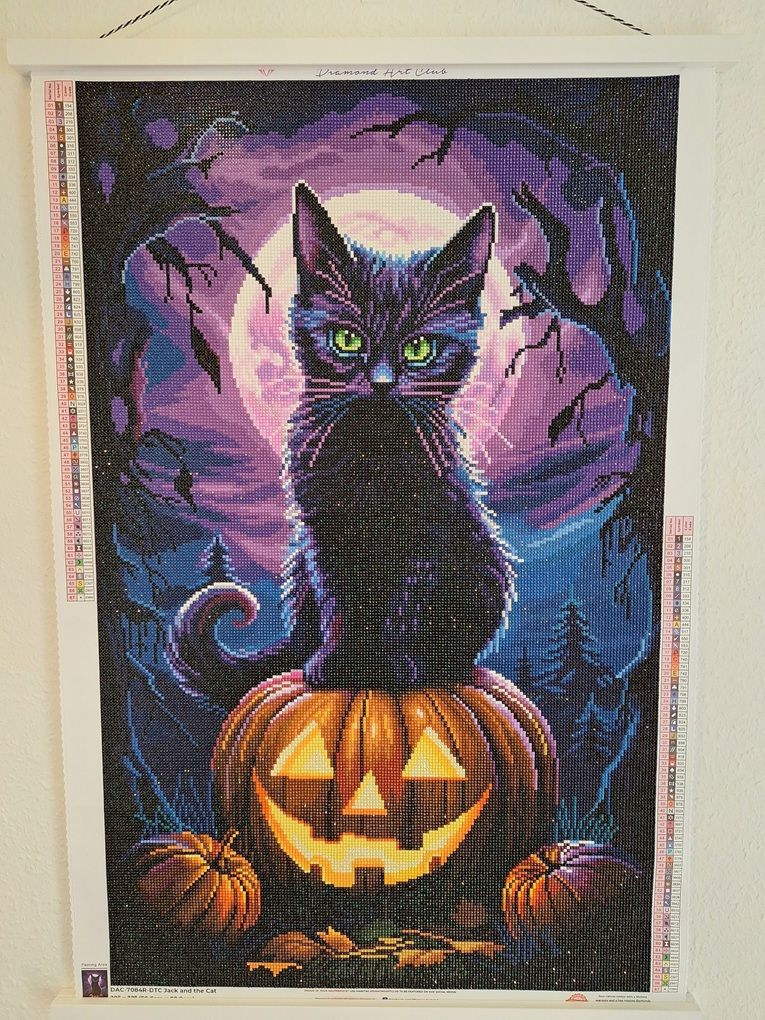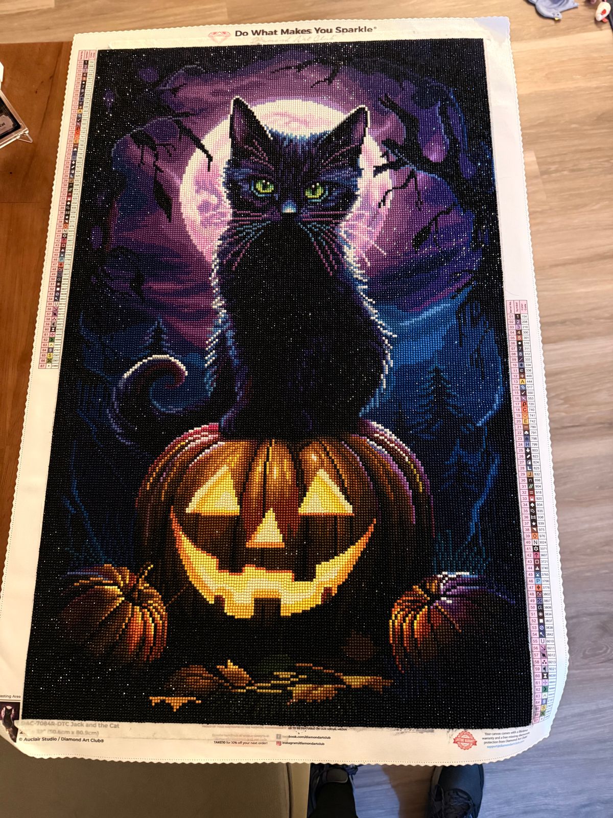 I’m not even finished yet, but this Jack & Cat diamond painting is already hauntingly good! The canvas is smooth and grippy, the symbols are crisp, and the drills sparkle like moonlight—so satisfying to place. The rich autumn tones give it instant Halloween charm, and every section I complete feels like a little trick-or-treat of sparkle. It’s relaxing, festive, and totally addictive. Even unfinished, I can tell it’s going to be a boo-tiful showpiece. Highly recommend for cozy Halloween crafting nights!