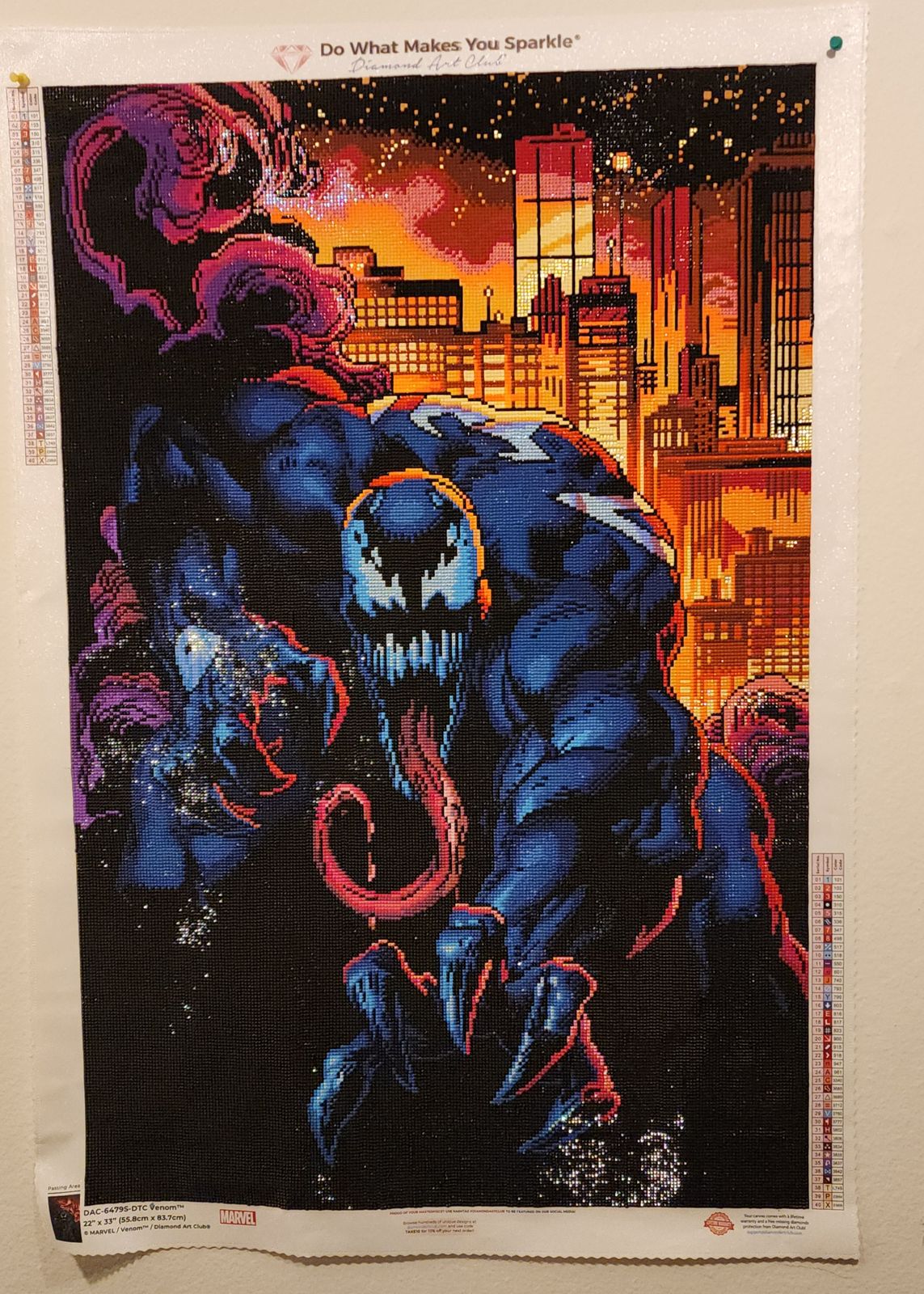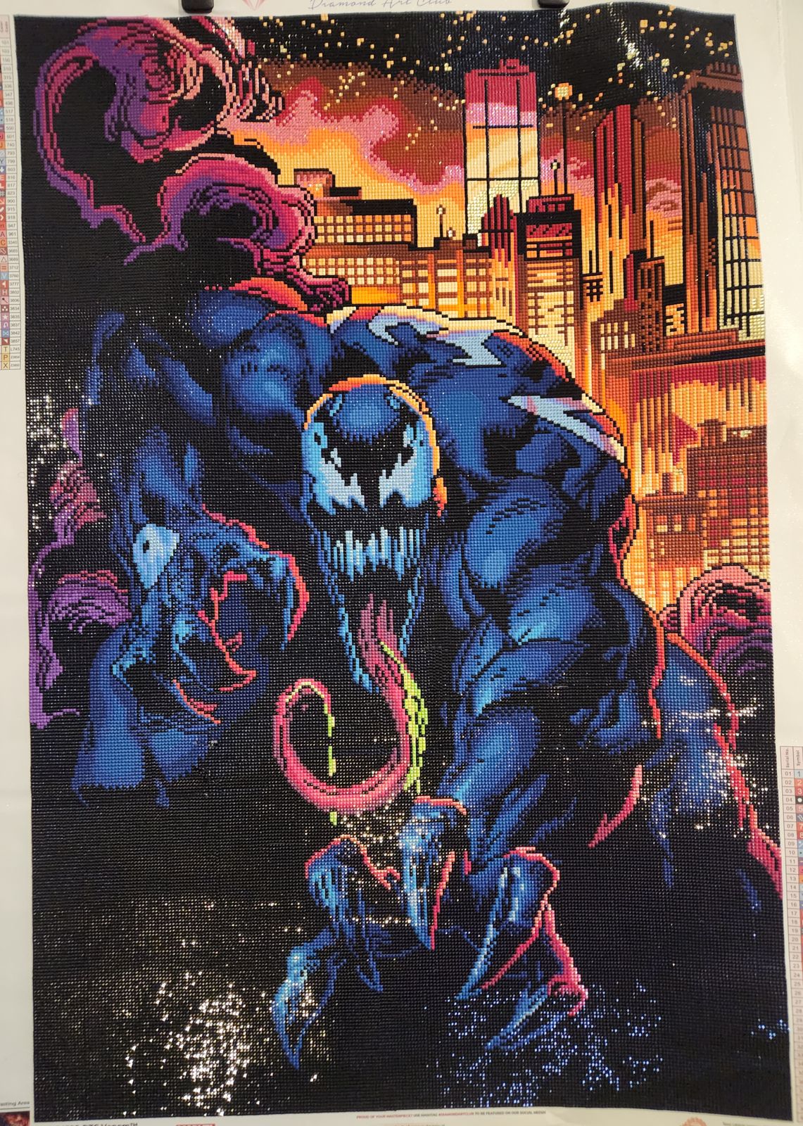 Had a great time working on this kit. The special drills are charted wonderfully with the render- i customized the tongue to match the comics. There is a LOT- a LOT- of 310 colorblocking in this kit, but its well worth it and makes sense with the artwork. The colors pop so well with the black. If you burn out from colorblocking, I recommend alternating between the top and bottom sections or rows to throw some confetti in there. Have a ruler handy for the buildings since they are very geometric- i actually had a harder time with those than the 310.