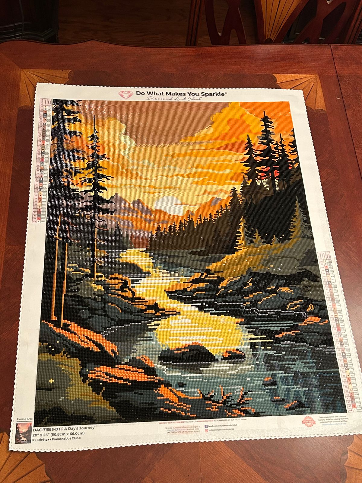 This is my first diamond art project. I have found my rhythm now, but it took me a few tries and a few "re-dos" to get there. I think there needs to be a part in the instructions that emphasizes the need for extra bright space with good lighting and no shadows to work on this. Also, it's important to know to keep things VERY straight so that your colors will all fit right. It's kinda like laying floor tile!!