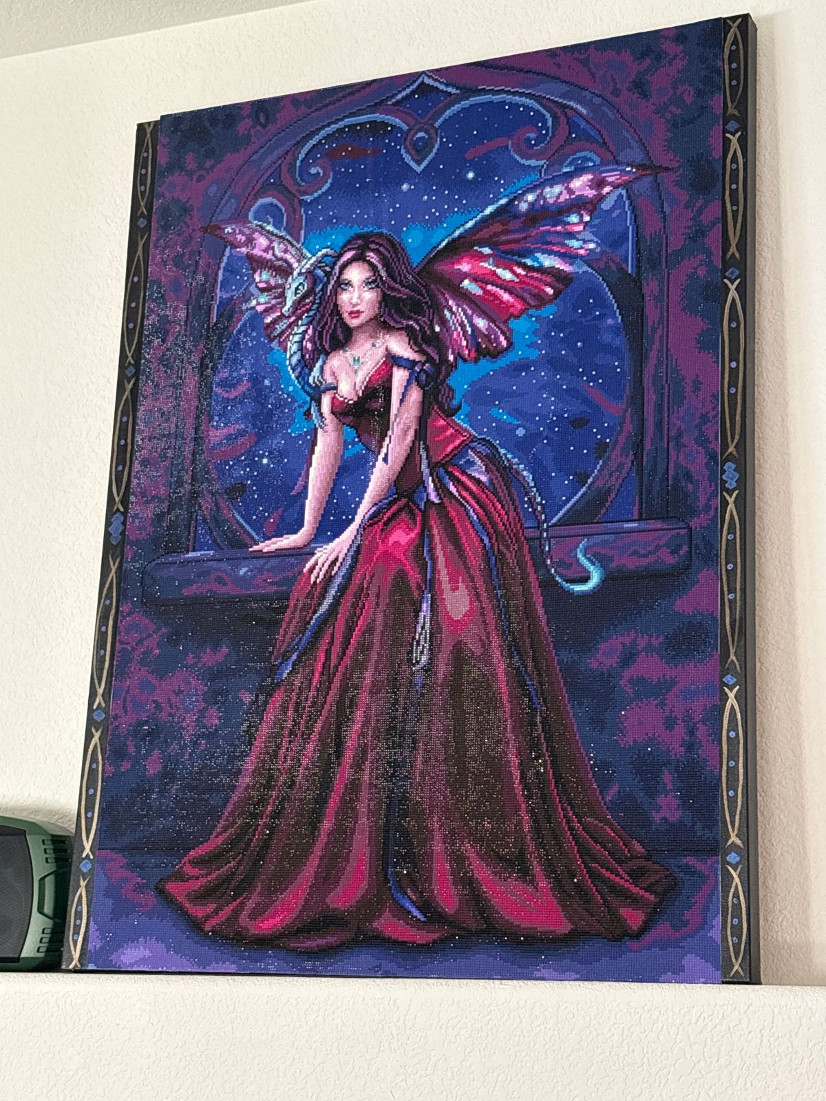 I really love this canvas, the colors are so pretty. Her dress is lovely and dragons are my favorite the wings are so colorful. Very big painting but I'm gonna do this one soon.