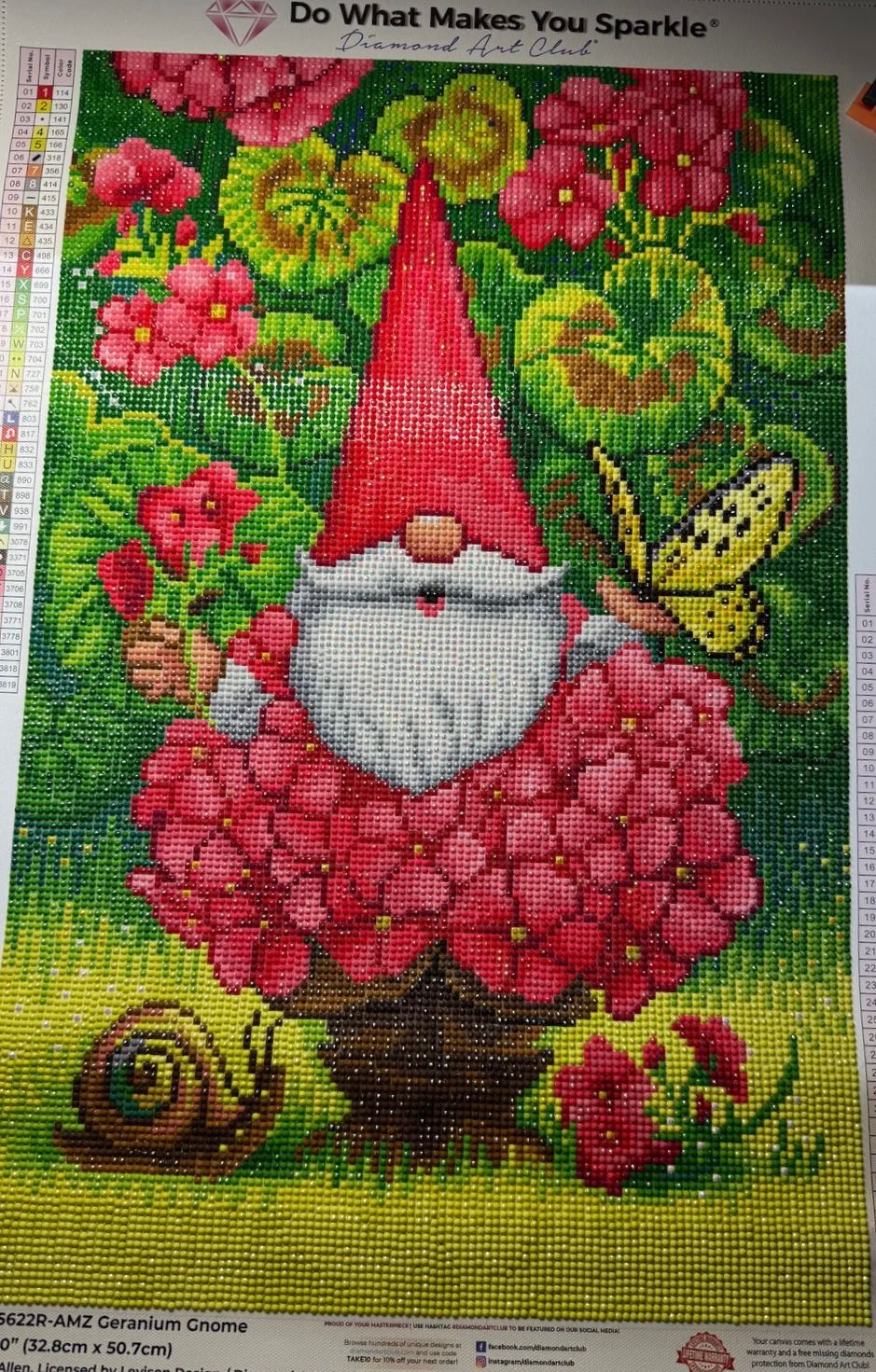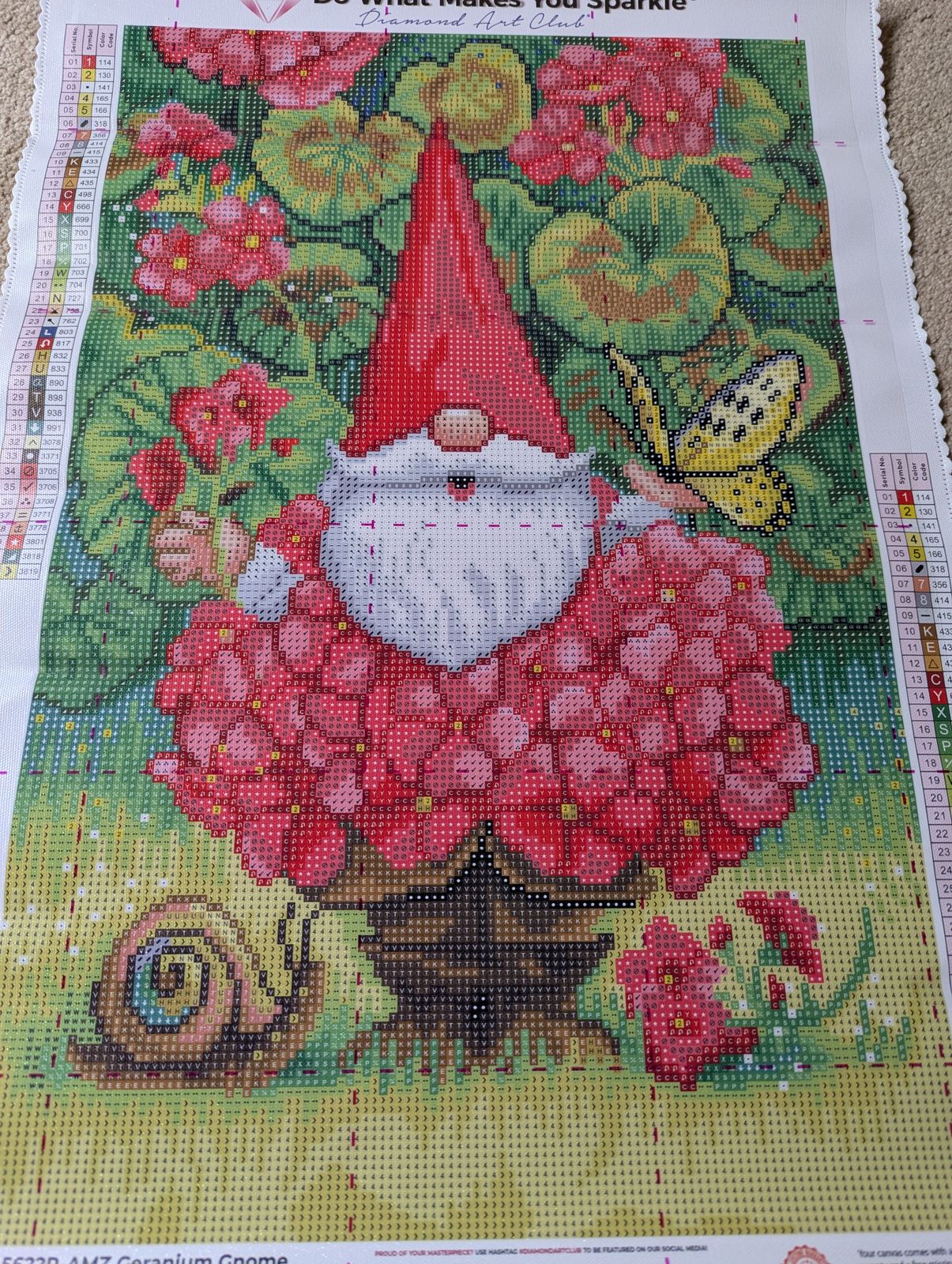 Tucked between bright blooms and leafy greens, this rosy-cheeked gnome brings the garden to life. A snail, a butterfly, and a whole lot of cheer—like a story waiting to be told, one sparkling gem at a time.