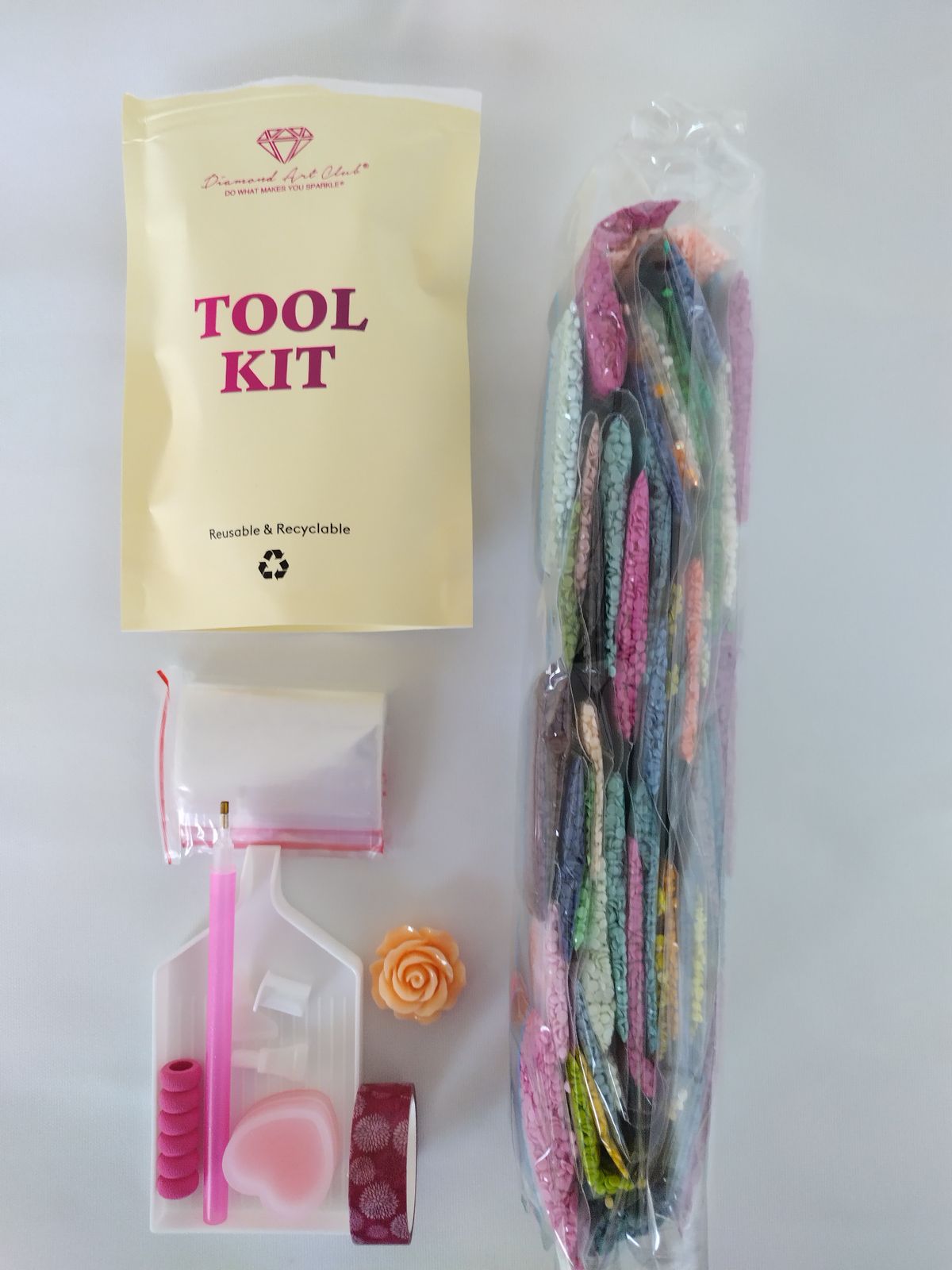 Canvas x 1, Diamonds, Tray x 1, Applicator + Grip x 1, Wax x 2