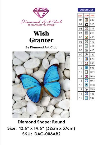 Resting atop a layer of white washed stones lies a spirit which flutters and flies. With its delicate wings of luminescent blue, this wish granter is here for only a brief moment in time.