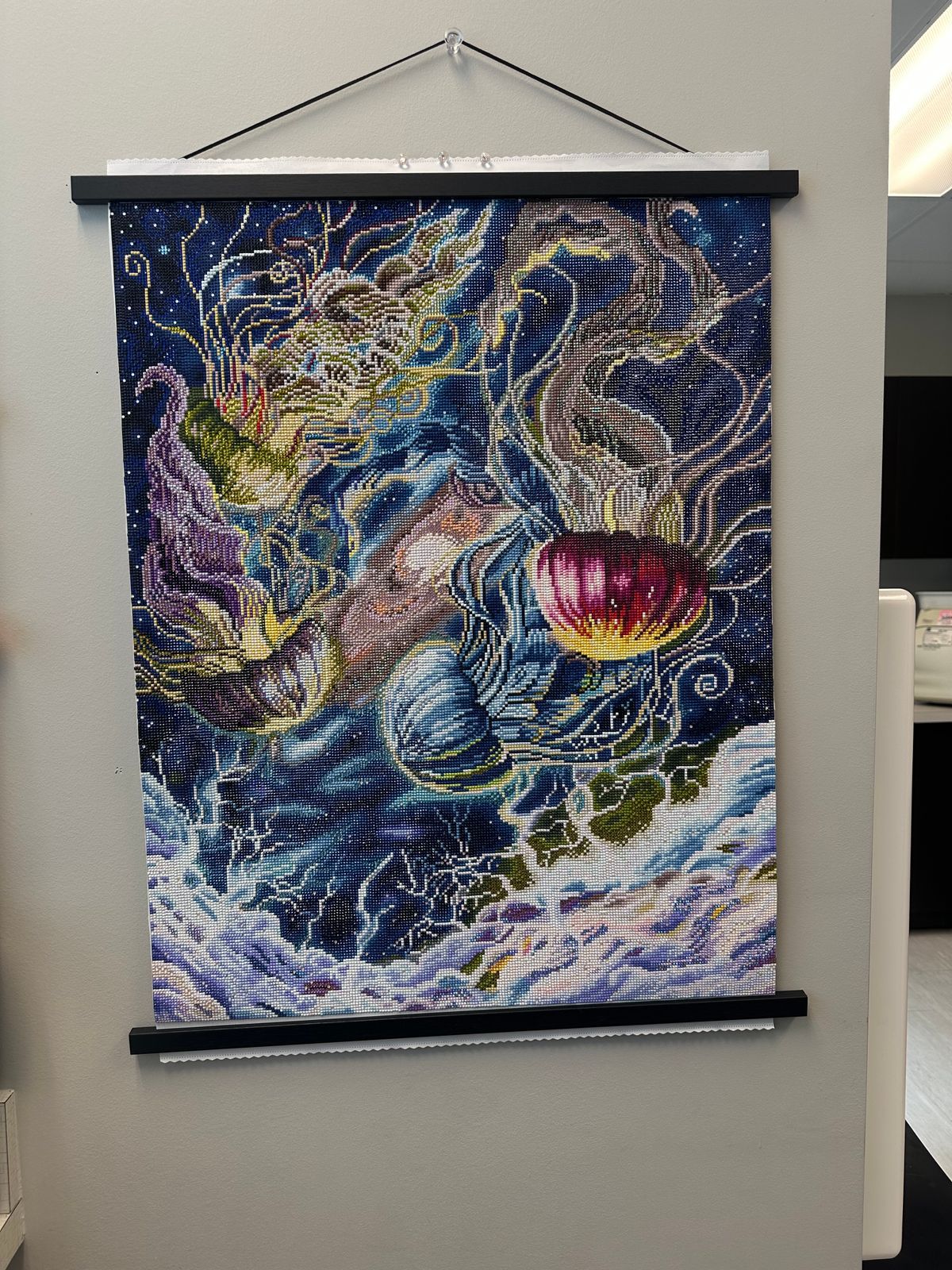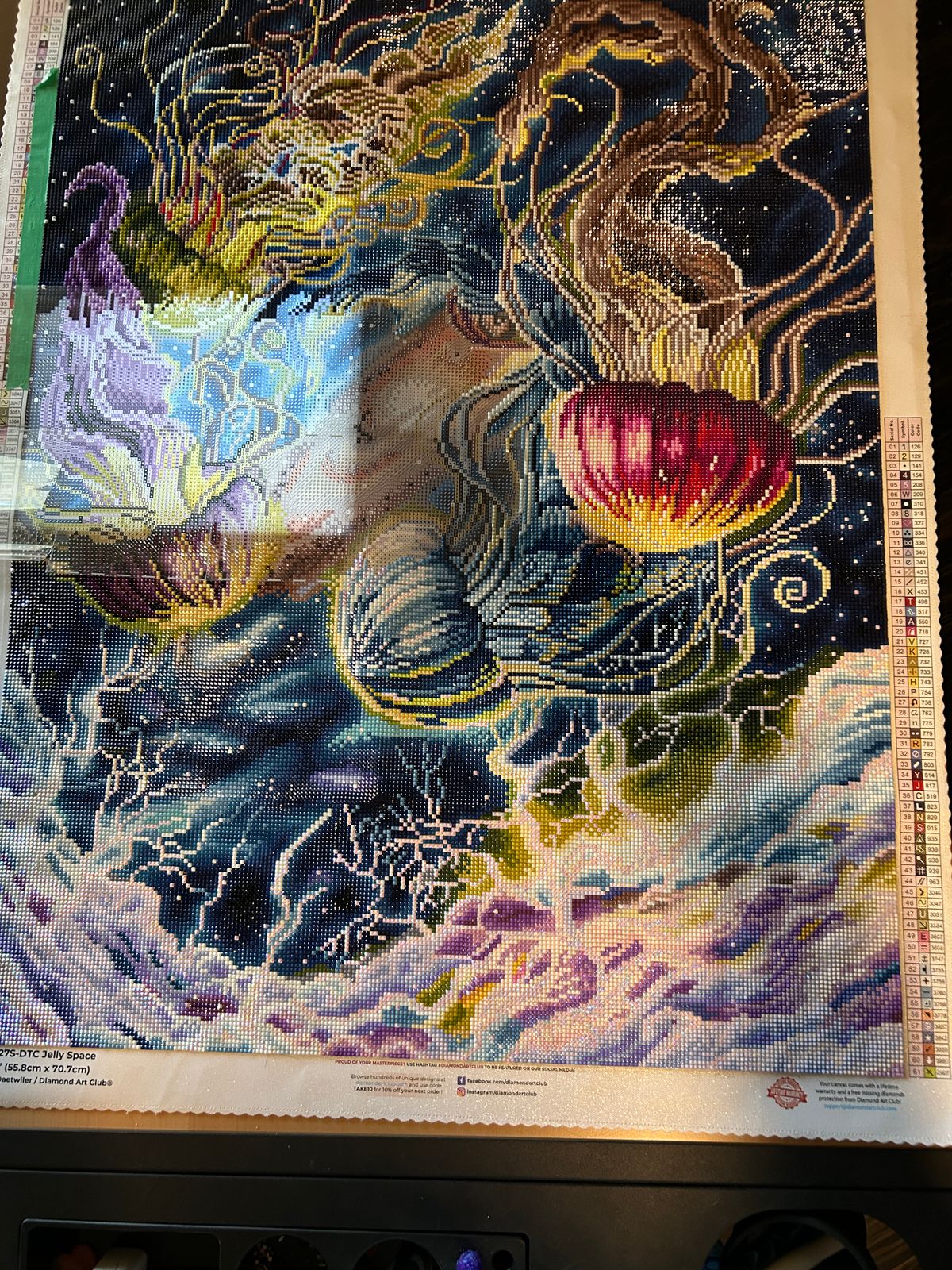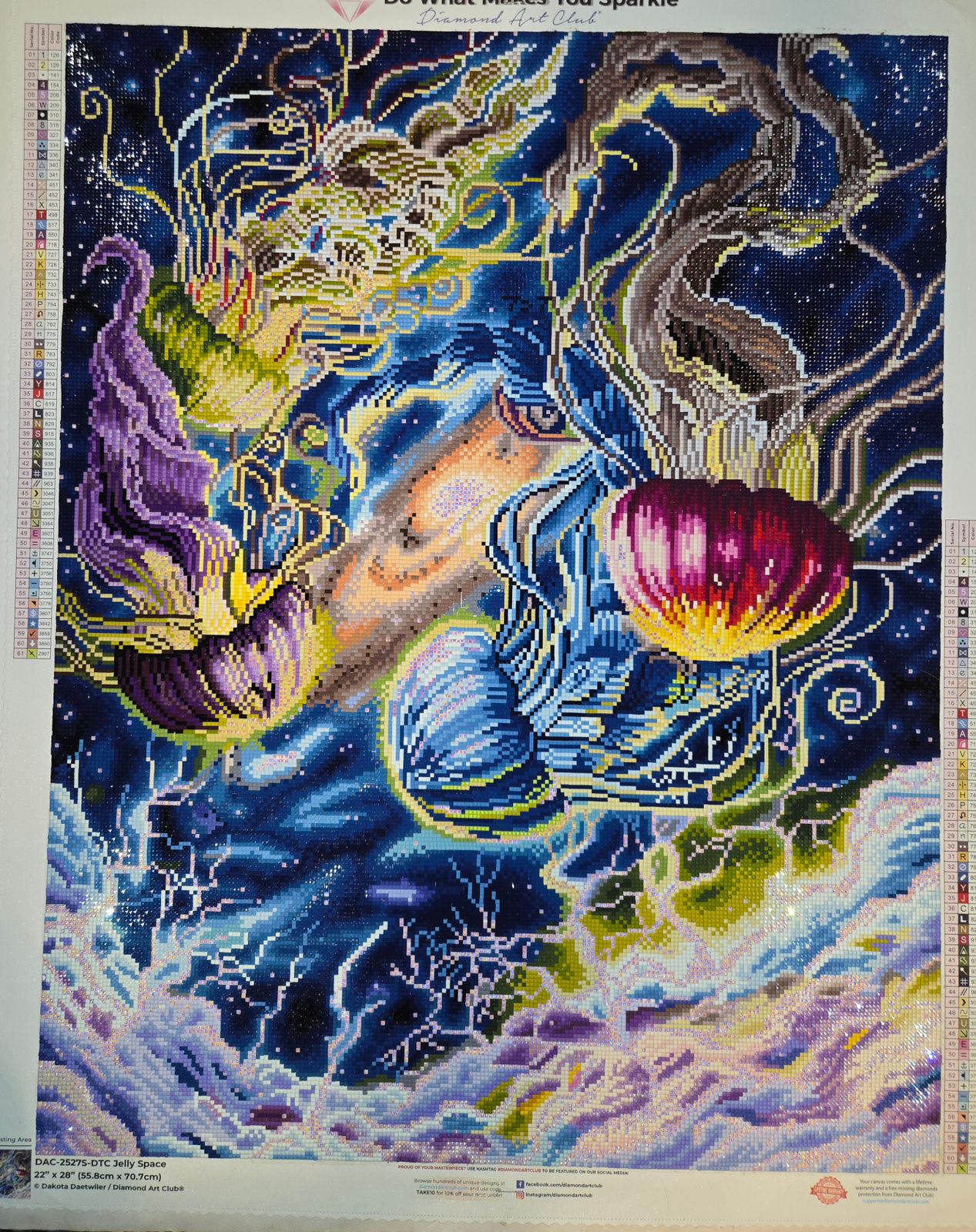 Jelly Space is hands down one of the most breathtaking diamond art canvases I've ever worked on. The colors are rich and vibrant, and the design is pure magic. It feels like you're painting a dream. The blend of celestial elements and floating jellyfish creates such a whimsical, otherworldly vibe that I couldn't take my eyes off it. The canvas quality is excellent, the drills are sparkly and easy to work with, and the symbols are clear and well-printed. This piece is a true conversation starter and will be proudly displayed. Thank you, Diamond Art Club and Dakota Daetwiler, for such a stunning and inspiring work of art!