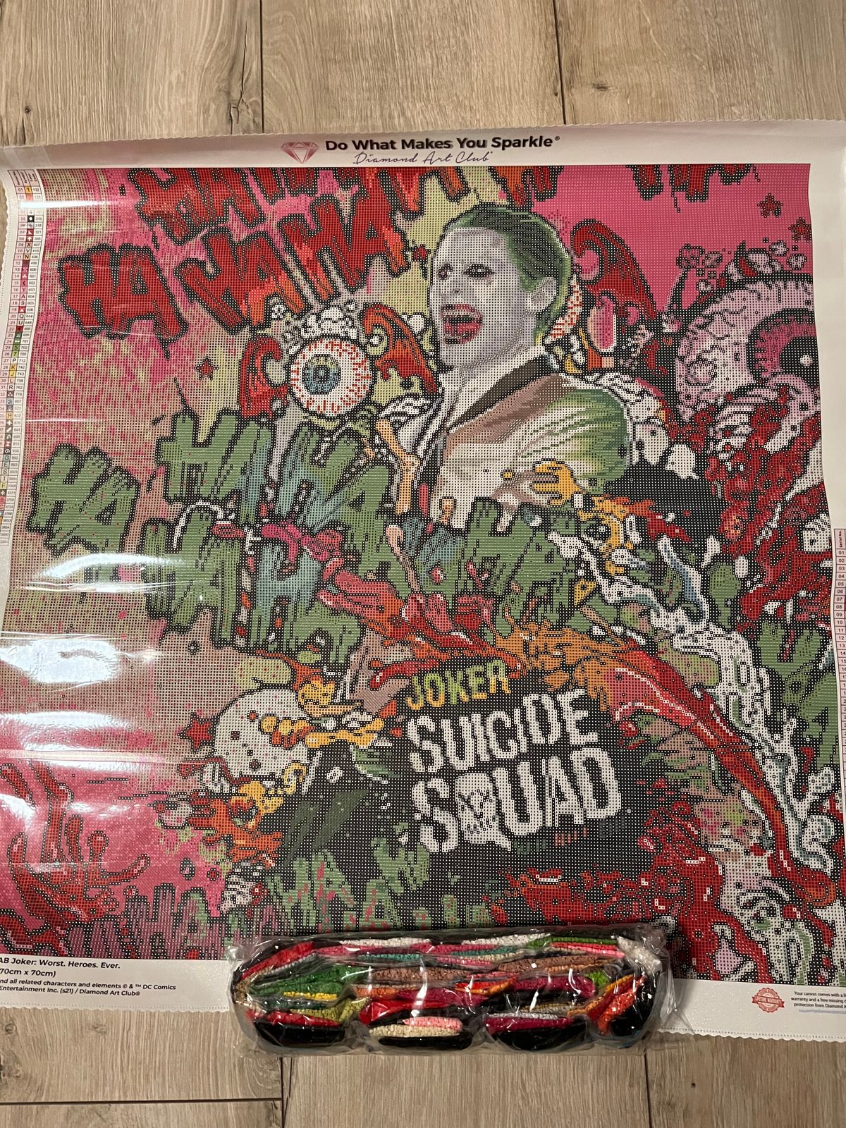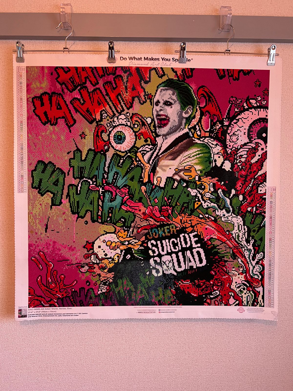 Chaotic and cartoon like looking diamond painting with perfect rendering and great color scheme. The Joker, what is not to love about this?