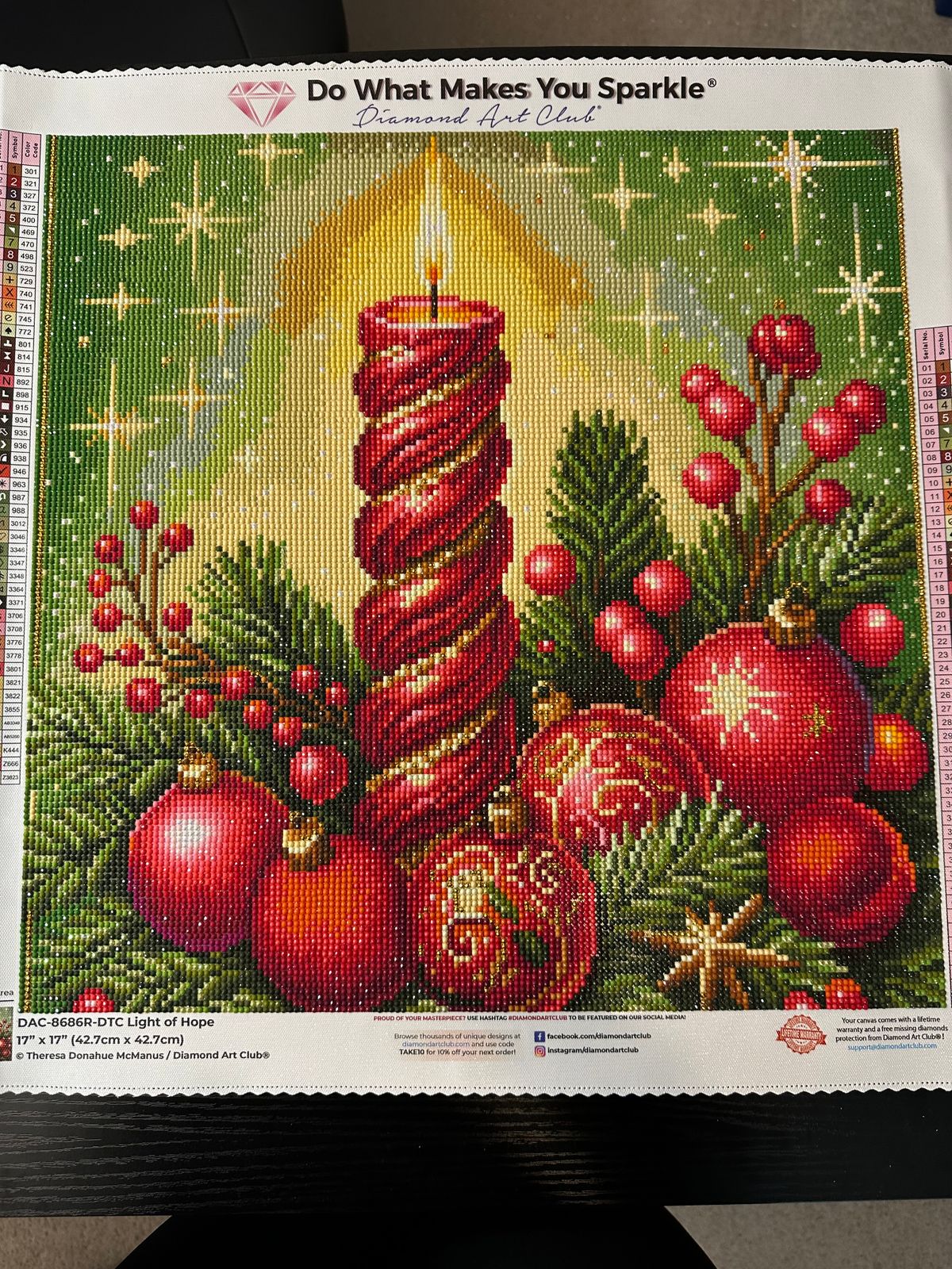 My very first DAC project, and I loved it! The sparkle and shine is unparalleled. This canvas was perfect for the holiday and got me in the Christmas spirit.