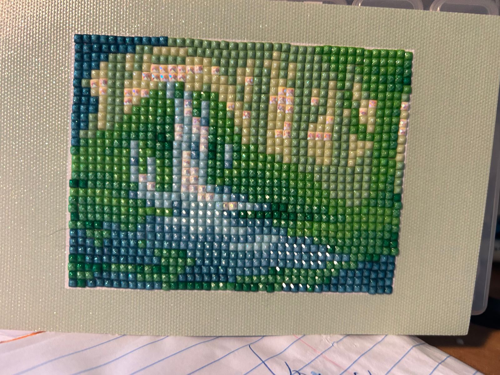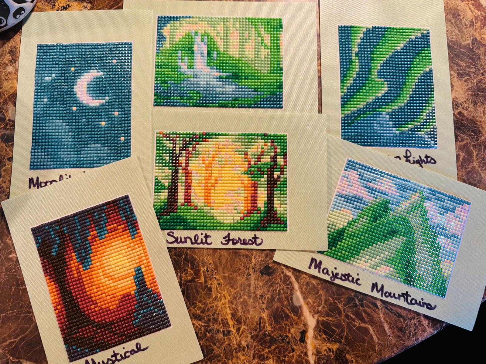 These are perfect for doing when you need a break from a big canvas. There were very few trash drills. The canvases were easy enough to read without a light pad, but the edges were cut a little crooked on a few of them, but that is easy enough to trim or hide with a frame. The painting itself was not crooked. Overall they were very enjoyable to do. I gave it a 4 for challenge level because it is all square fairy dust and ABs, so you have to be more careful in placement, at least I did.