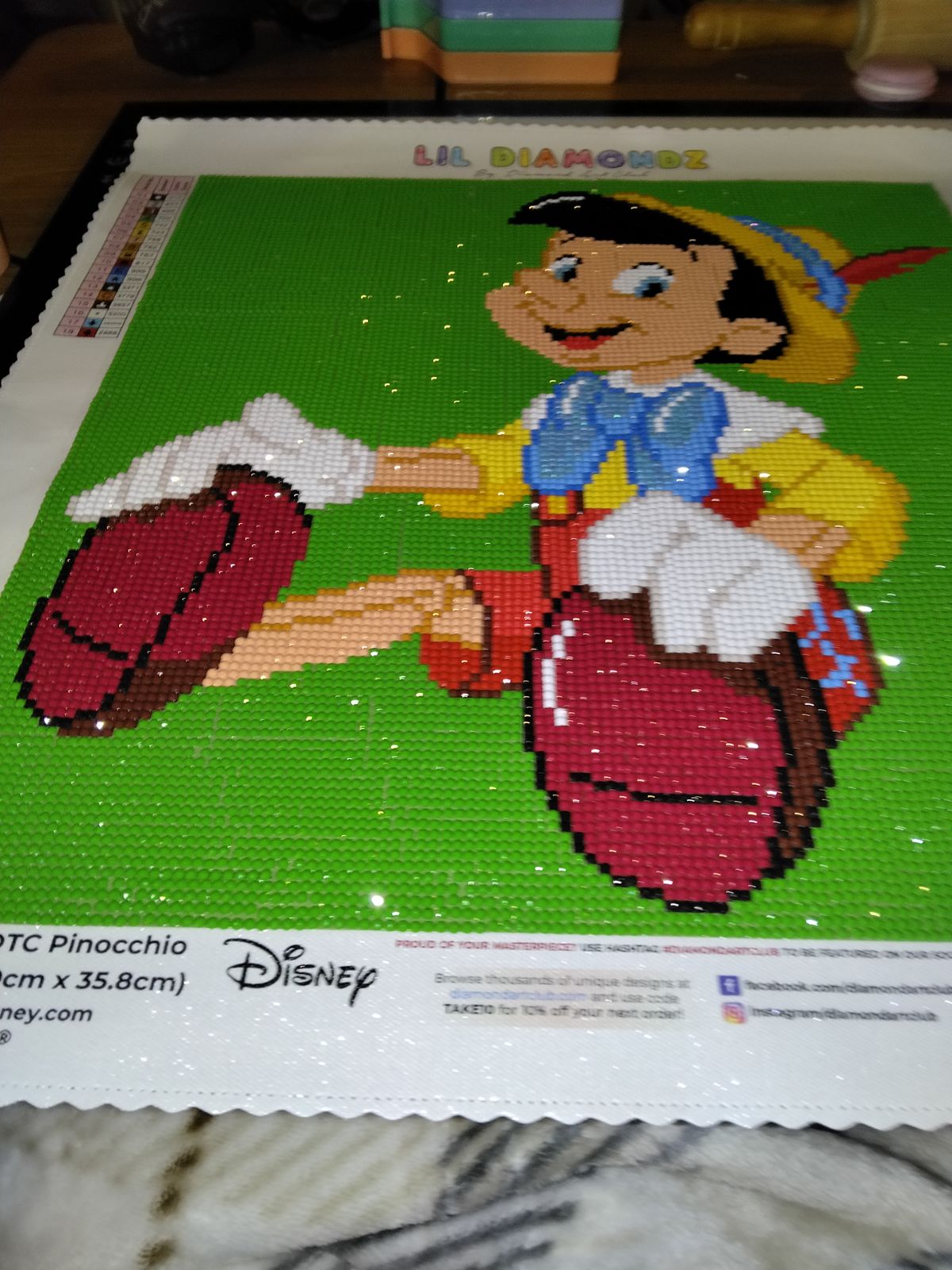 Love the vibrant colors. It’s a Christmas gift for my granddaughter since the loves the story of Pinocchio. Perfect size to finish quickly and frame.