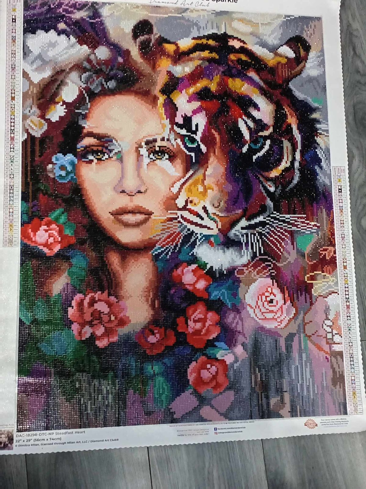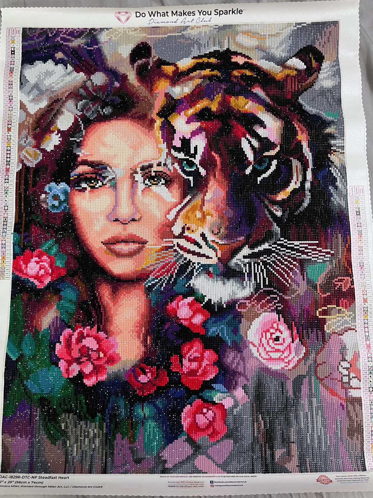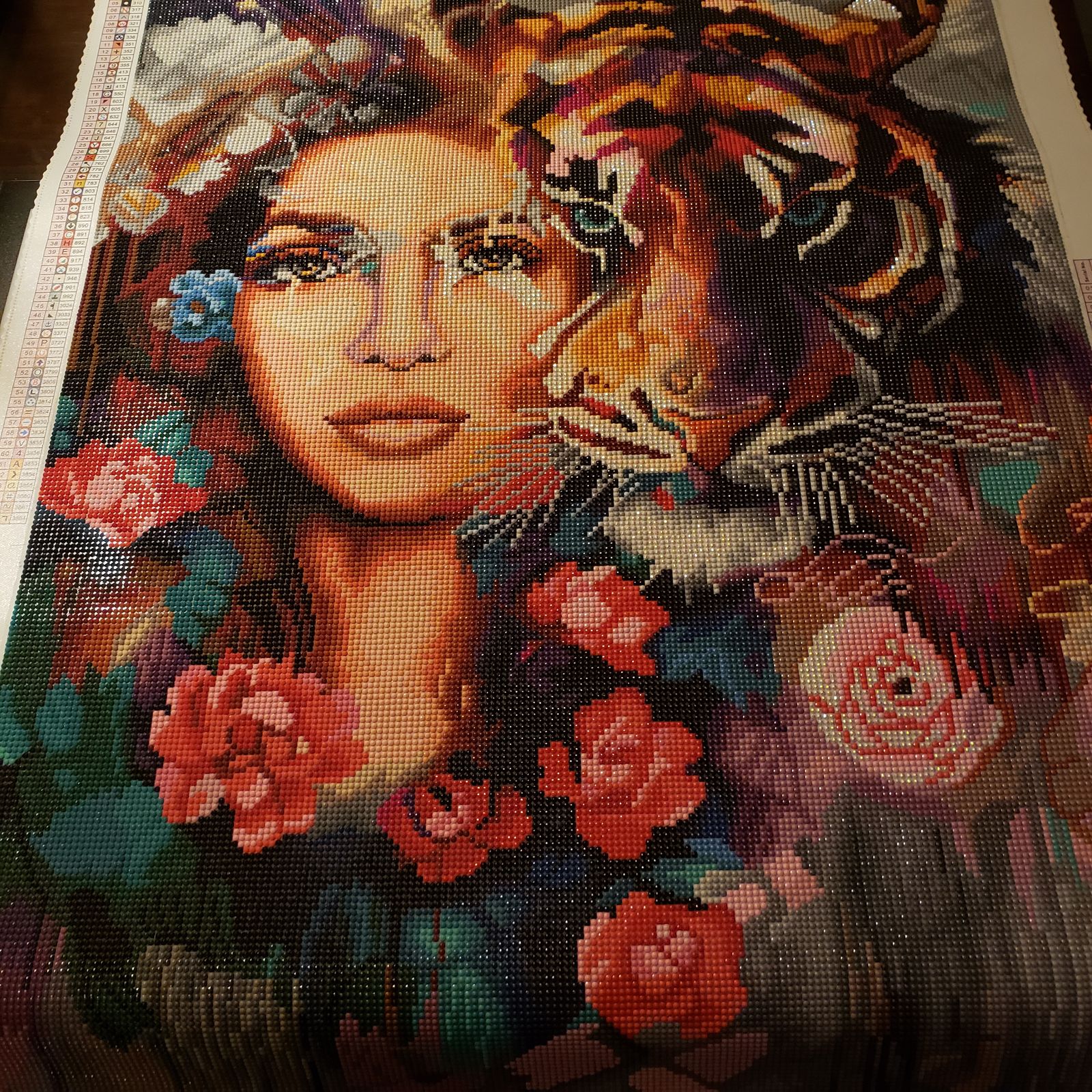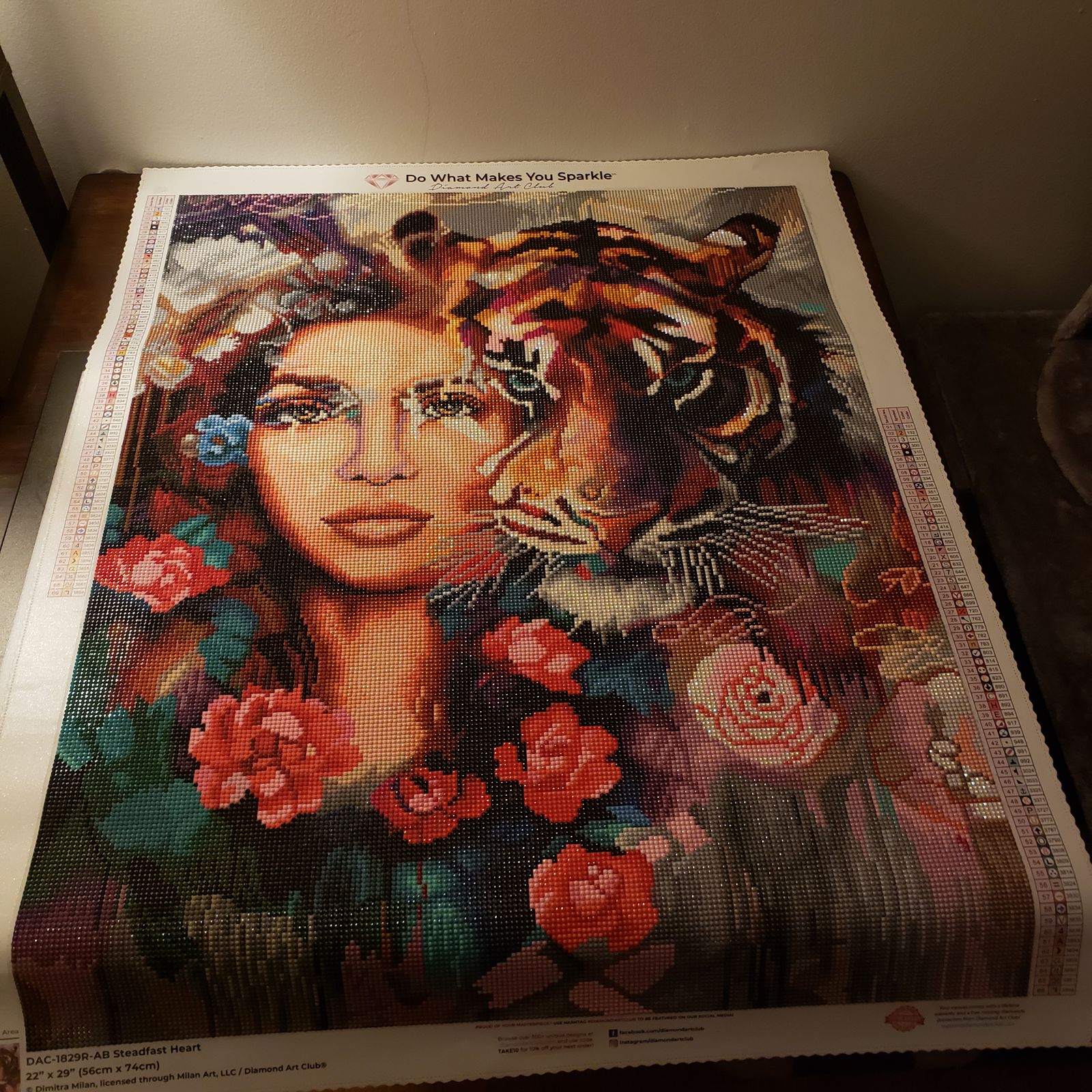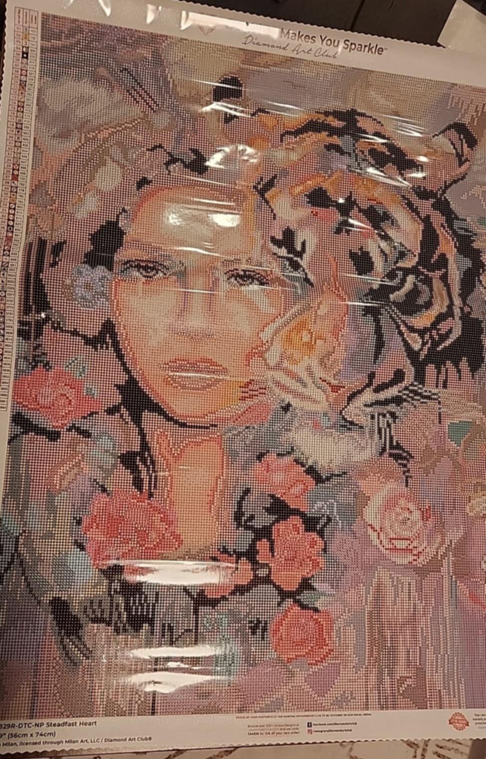 The initial canvas is gorgeous! I have not completed it, but have about 2 sections done at time of this review, and the amount of colors is a lot, but exciting to see them come together!