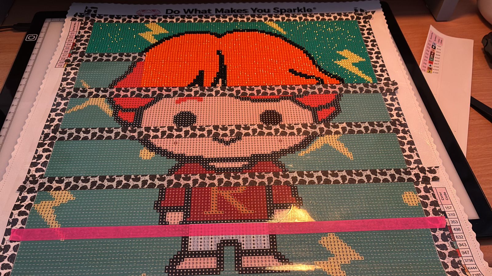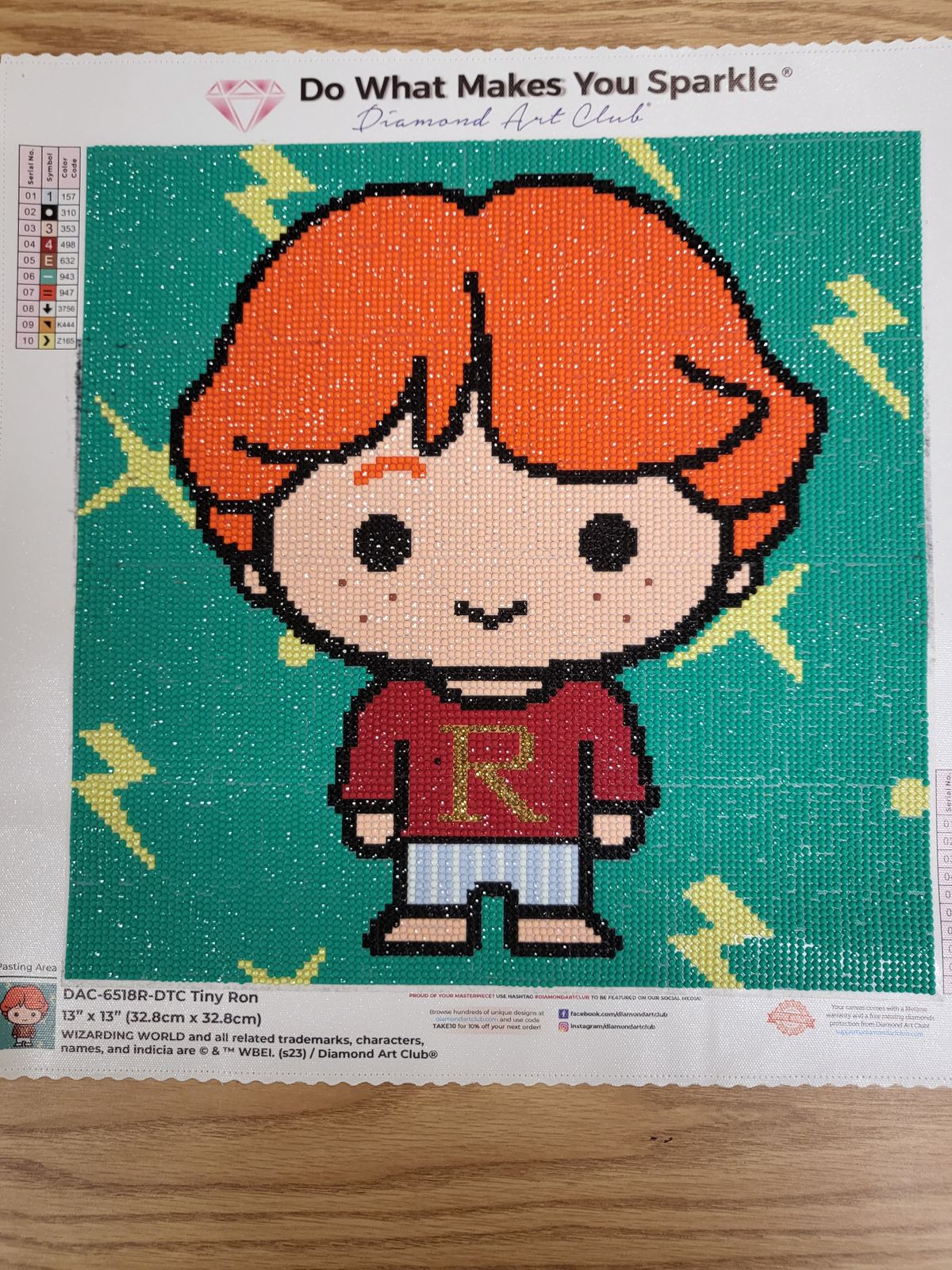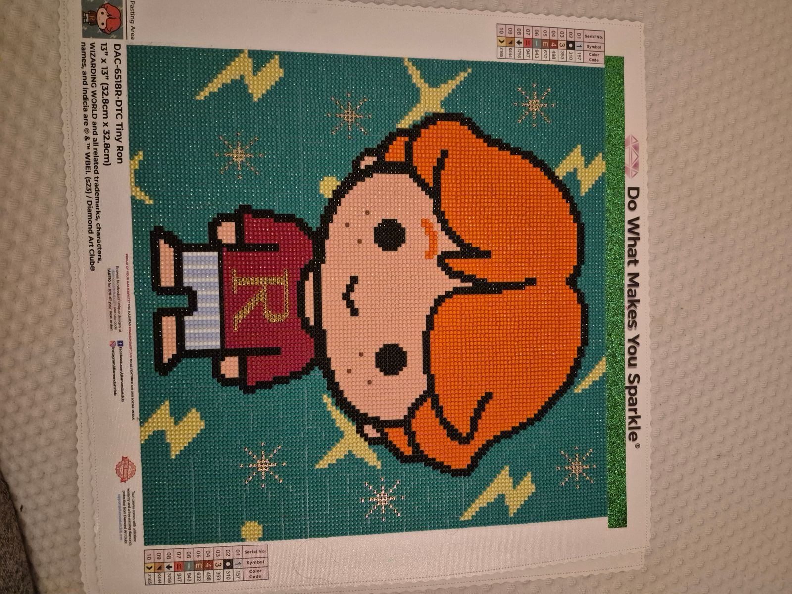 This Tiny Ron Weasley diamond painting turned out absolutely adorable! 🧡 The details are spot-on — his little red hair, Hogwarts robe, and wand all shine beautifully once finished. The canvas was clear and easy to read, and the drills were high quality with plenty of sparkle. ✨
