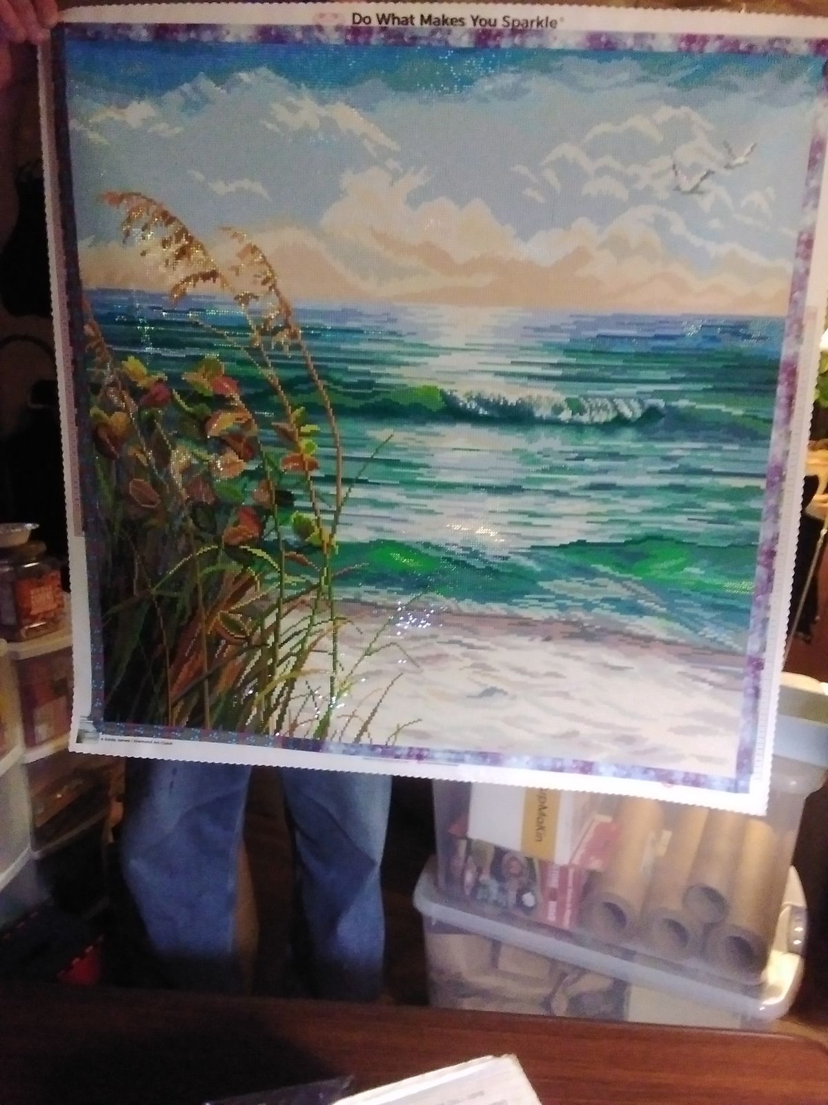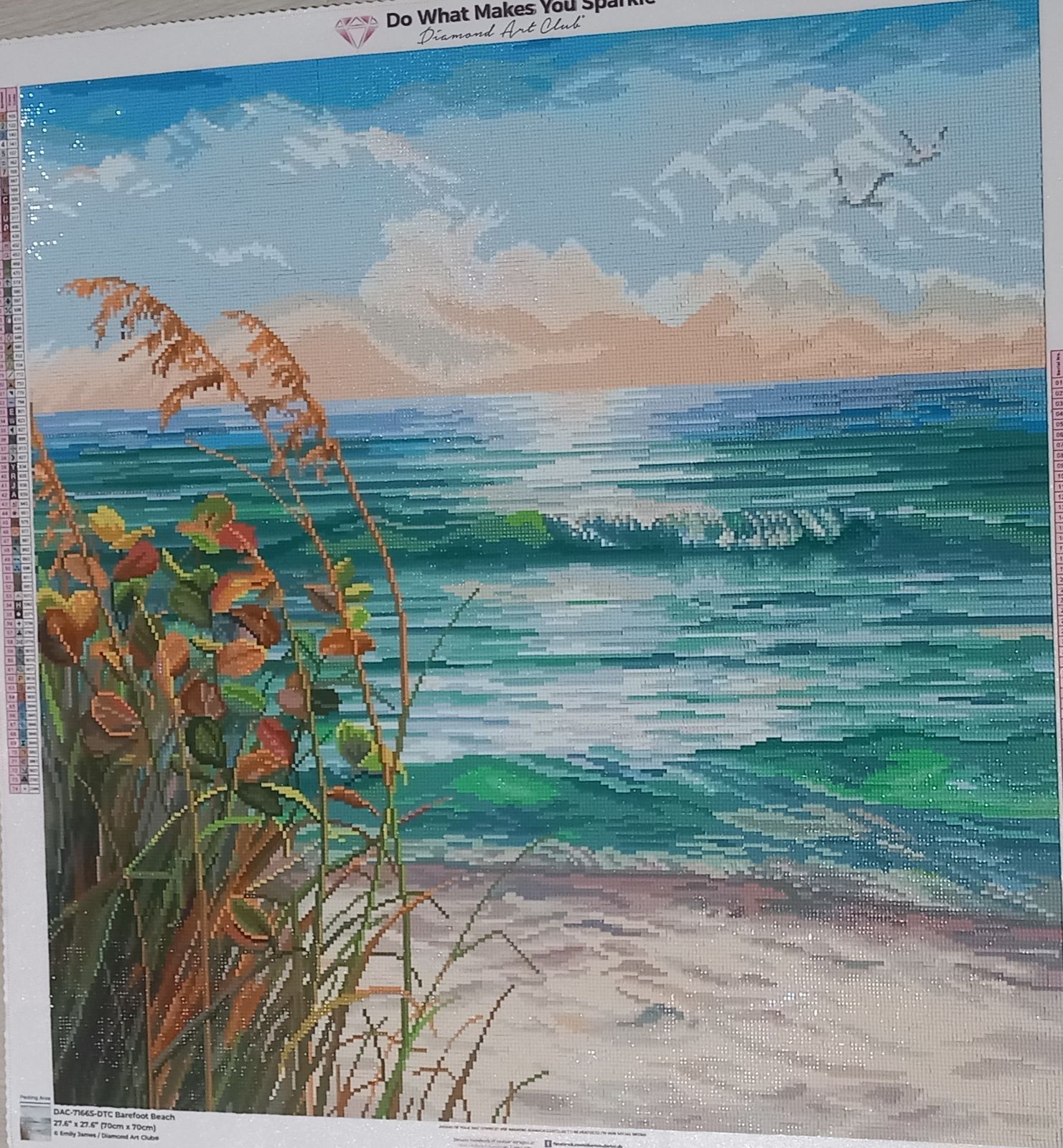 This diamond painting turned out so beautifully. The image is so tranquil and soothing. When I look at it I can easily transport myself to wherever it is and enjoy the peacefulness of the waves softly crashing on the shore. I was a little nervous as I worked on it as with most diamond paintings, I could not see the end result up close as being as good as the image. Well I was thankfully surprised at how good it looks from a slight distance, as with all paintings. Thank you Diamond Art Club for another beautiful image to add to my collection.