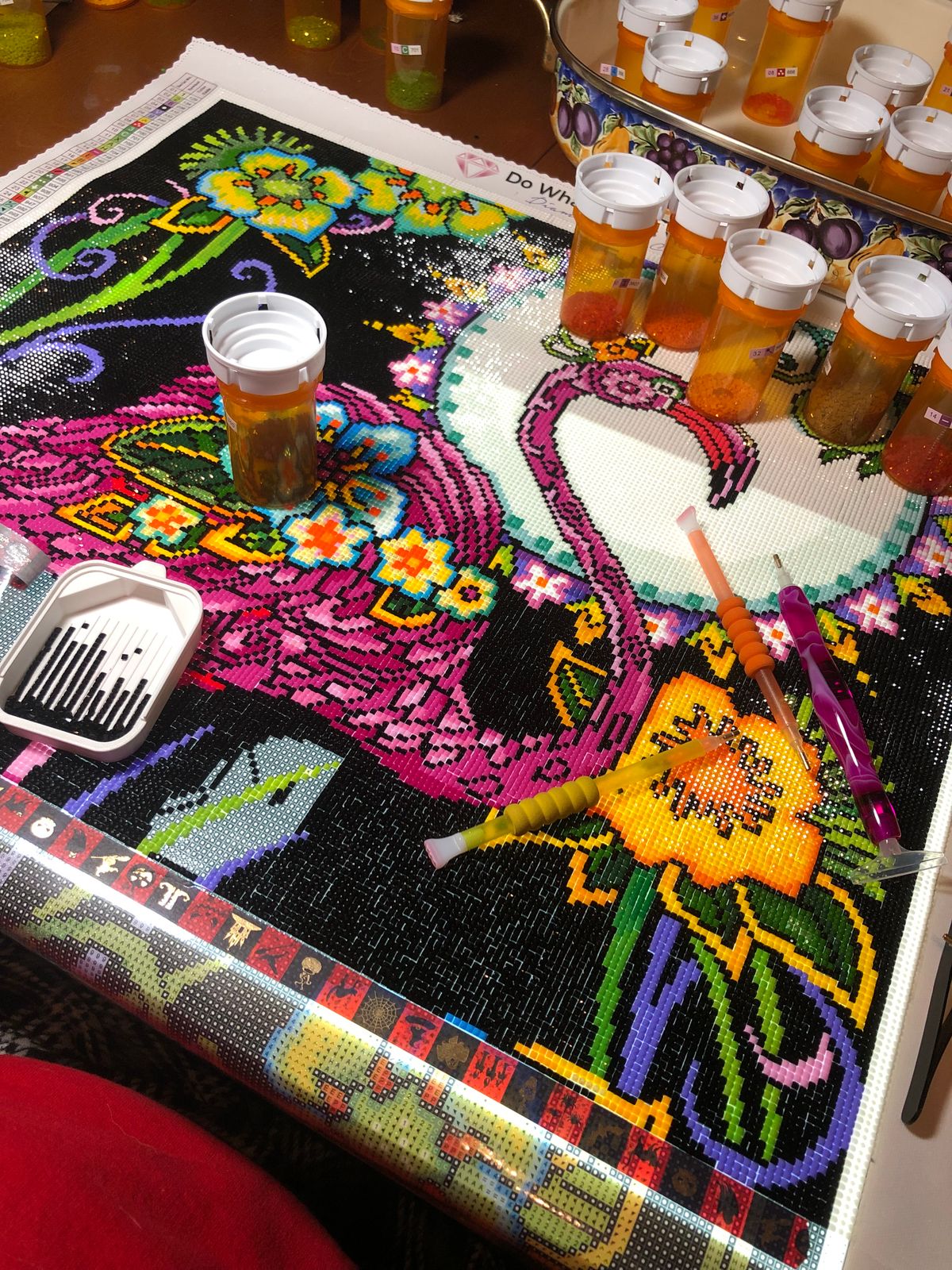 Drills: Diamond Art Club uses premium drills, which are smooth and shiny, giving your final masterpiece an incredible sparkle. The color palette is rich and vibrant, with no missing or broken drills. I was particularly impressed with how each color was individually bagged, which minimized the need for sorting. The drills also fit perfectly on the canvas, making it easier to work without gaps.