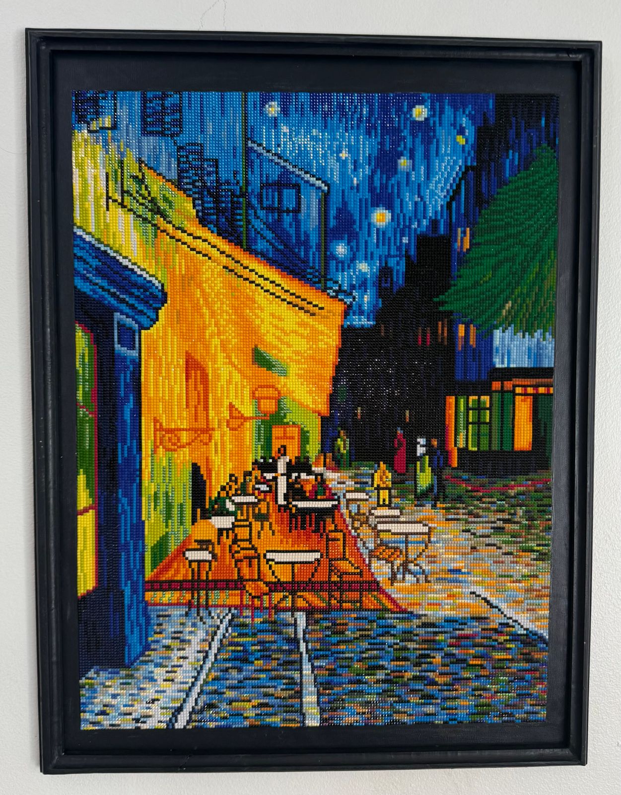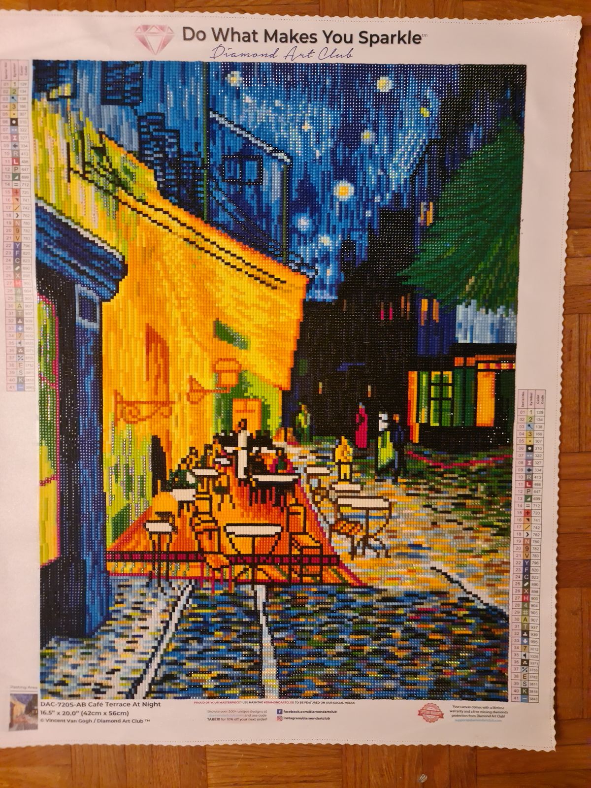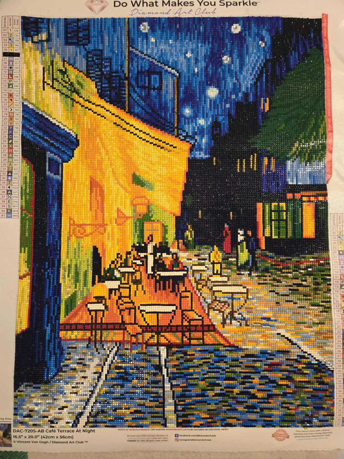 This painting had me drill down to the 5 W's of Van Gogh and I am glad I did. Mental Health was not taken seriously and this painting spoke volumes for the time. I blinged this out to the 9s and stayed true to the artist and removed the black from the painting.