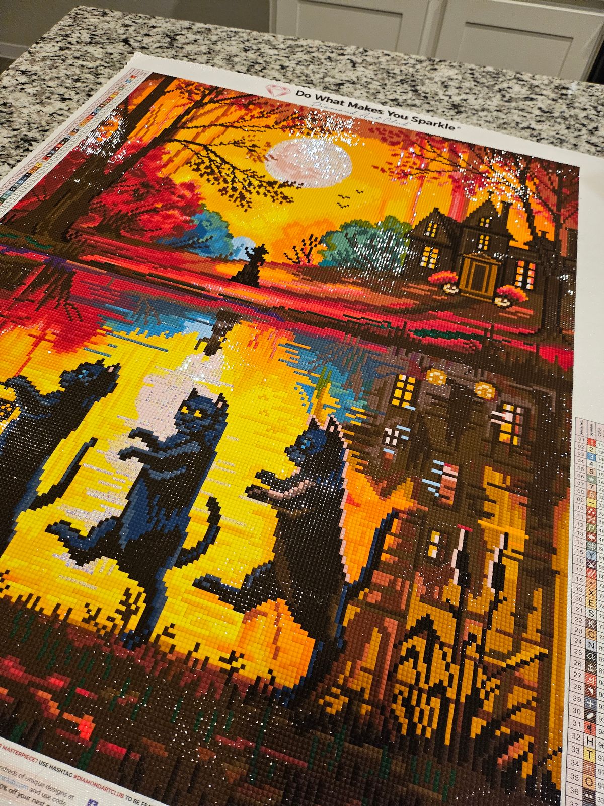 This reminded me of my mother who lived in a woodsy area and she rescued cats, TNRing them (trap, neuter, return). It took me 18 days to complete, it went quickly as I got better at multiplacing the drills. Now I will be ready to display proudly around Halloween.