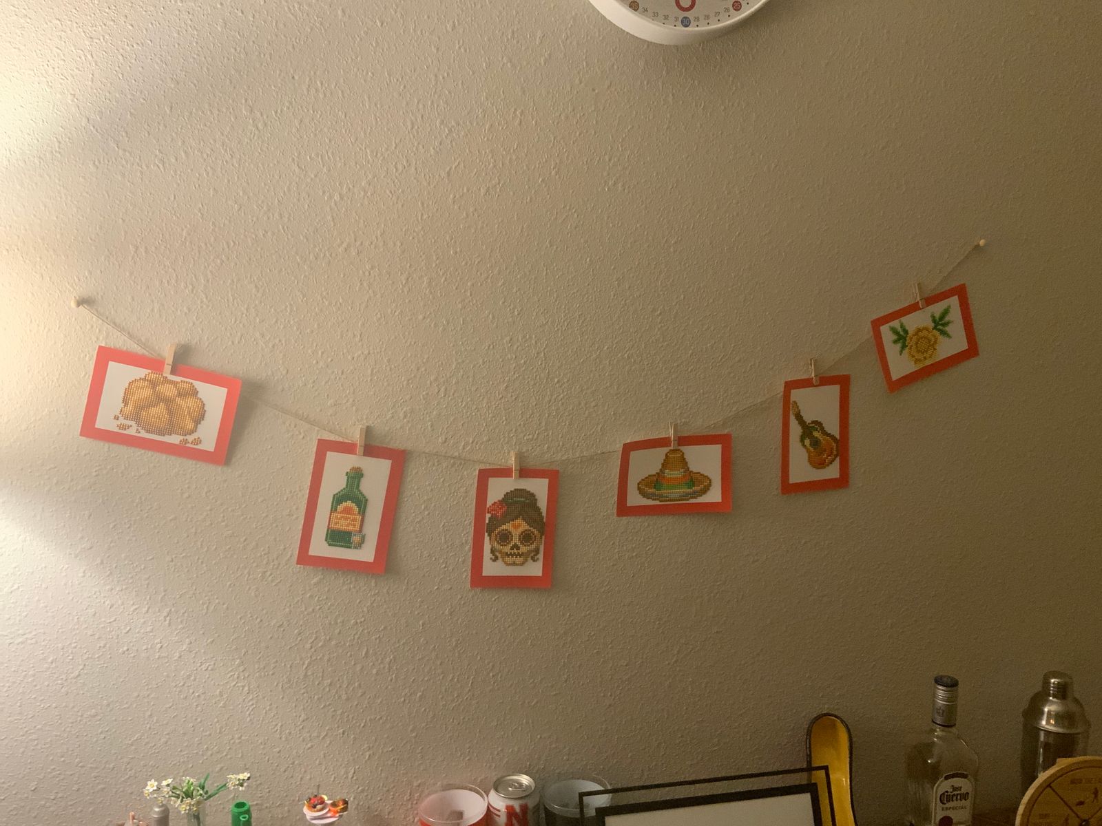 Love this Set! I’ve framed the Skull for my daughter (she LOVES these). I’ve framed the Tequila, Sombrero & Guitar & hanging by our “bar”. The Bread & Flower? Don’t know yet.