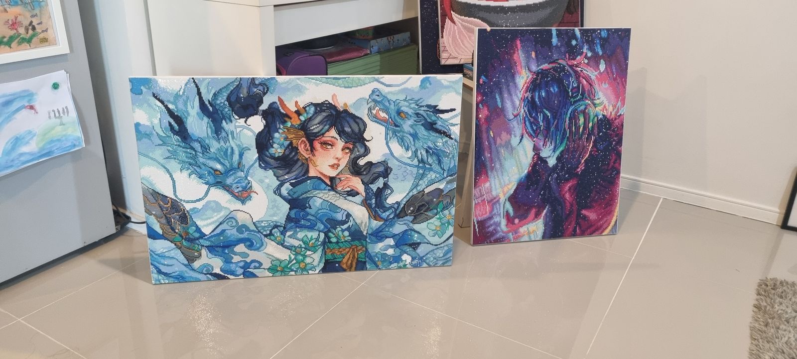 She turns out gorgeous! I love all the blues and the electro diamond is such a nice addition. Shes truly beautiful! Shes a great size and looks beautiful on the wall.