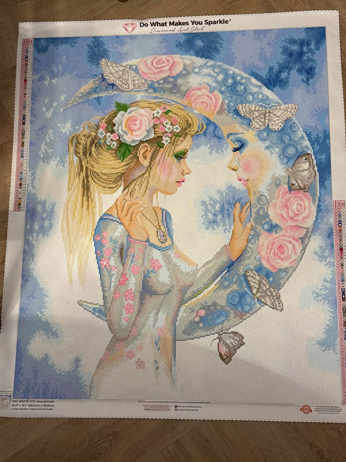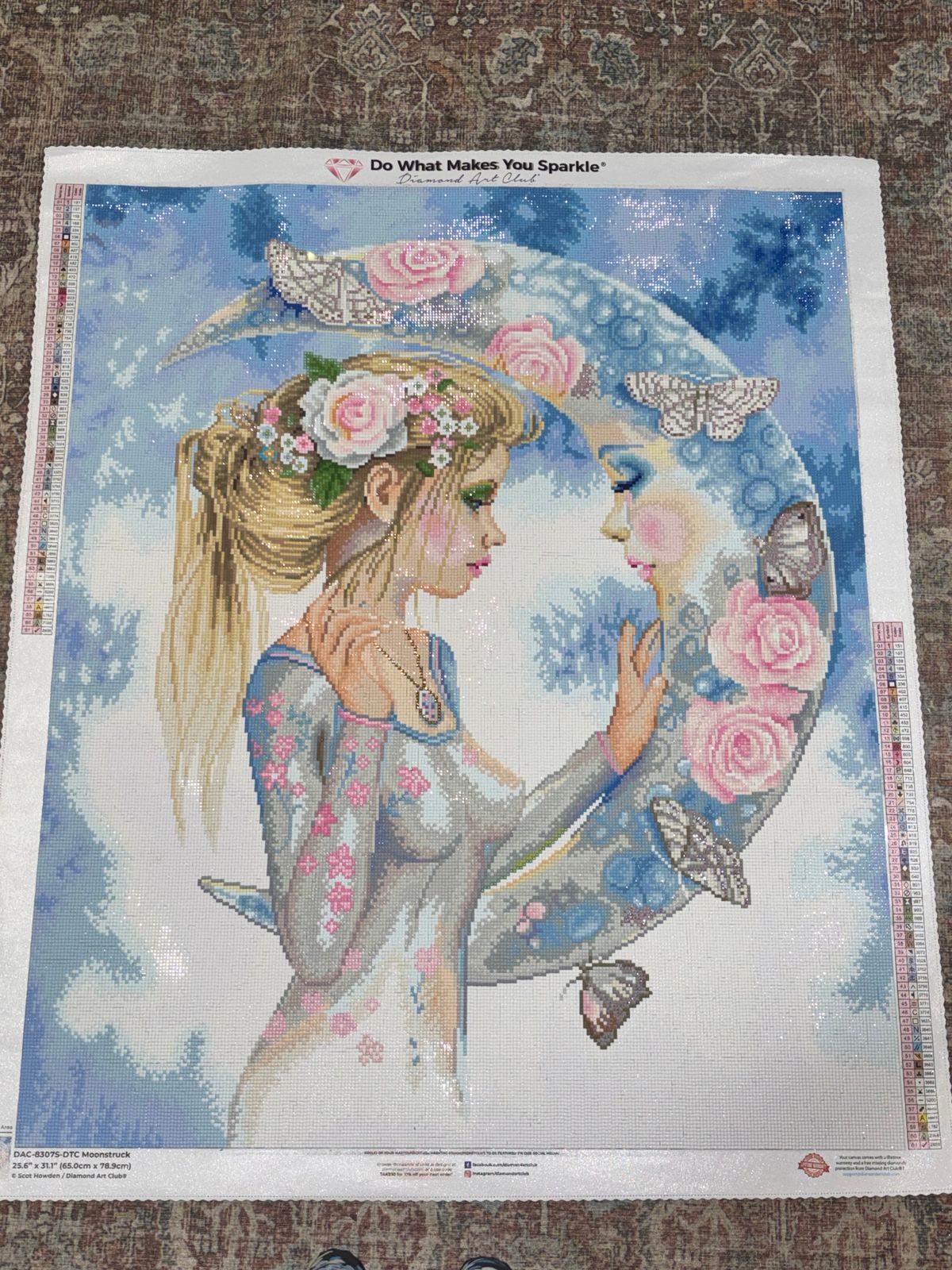 I fell in love with Moonstruck as soon as I saw it. This canvas was an absolute pleasure to work on and complete. There weren’t very many trash drills and I had plenty of every color. The soft colors were a joy. I highly recommend this canvas. It is one of my favorite finishes.