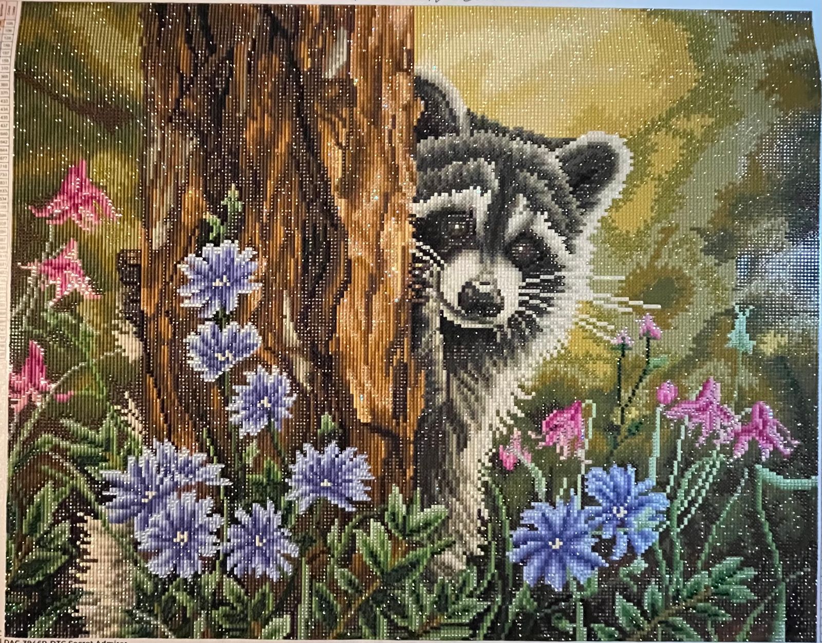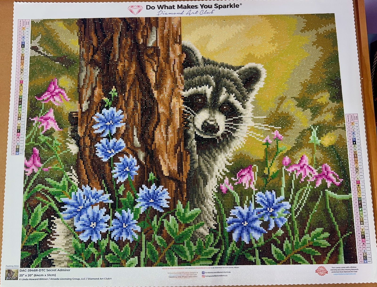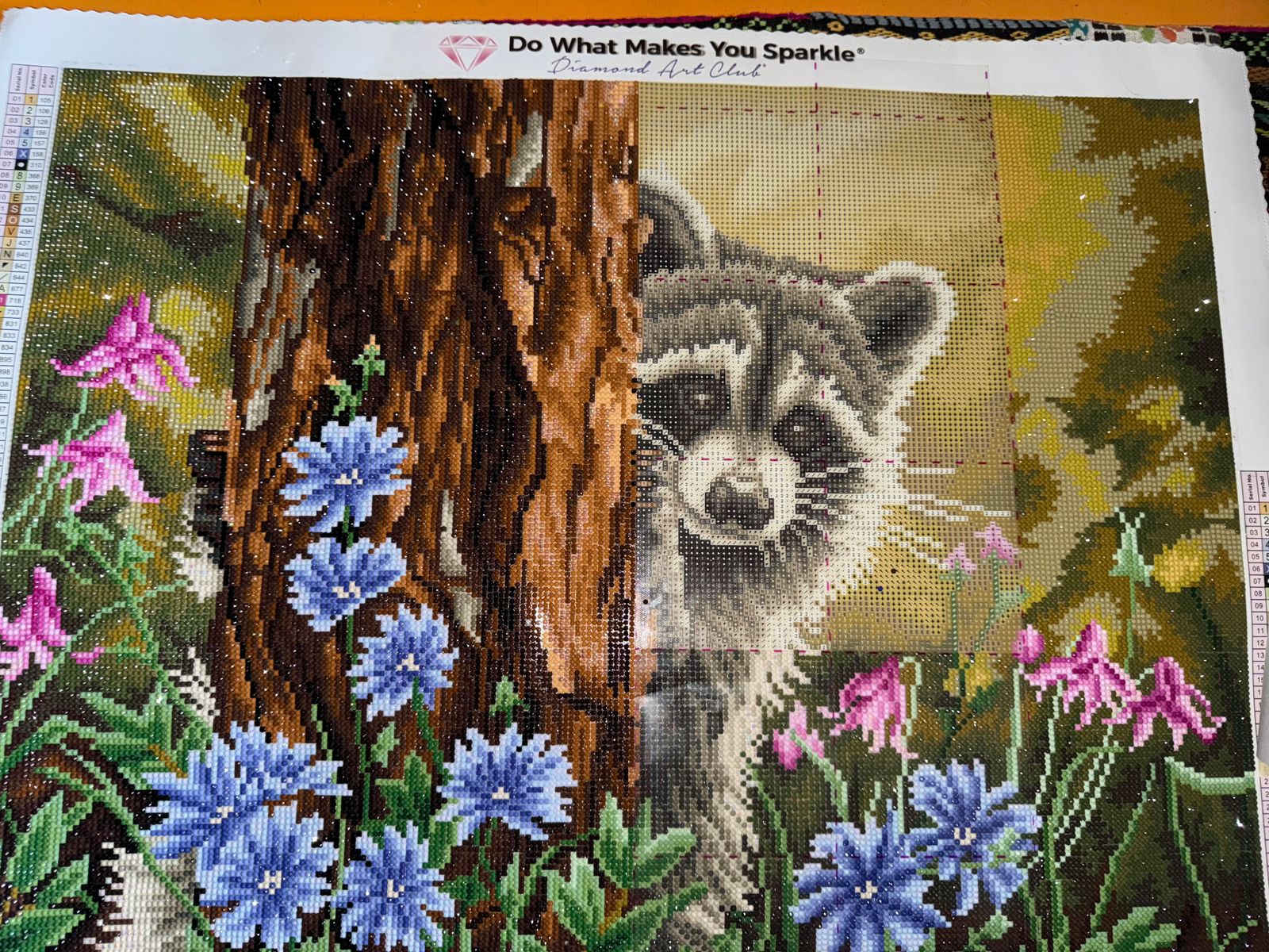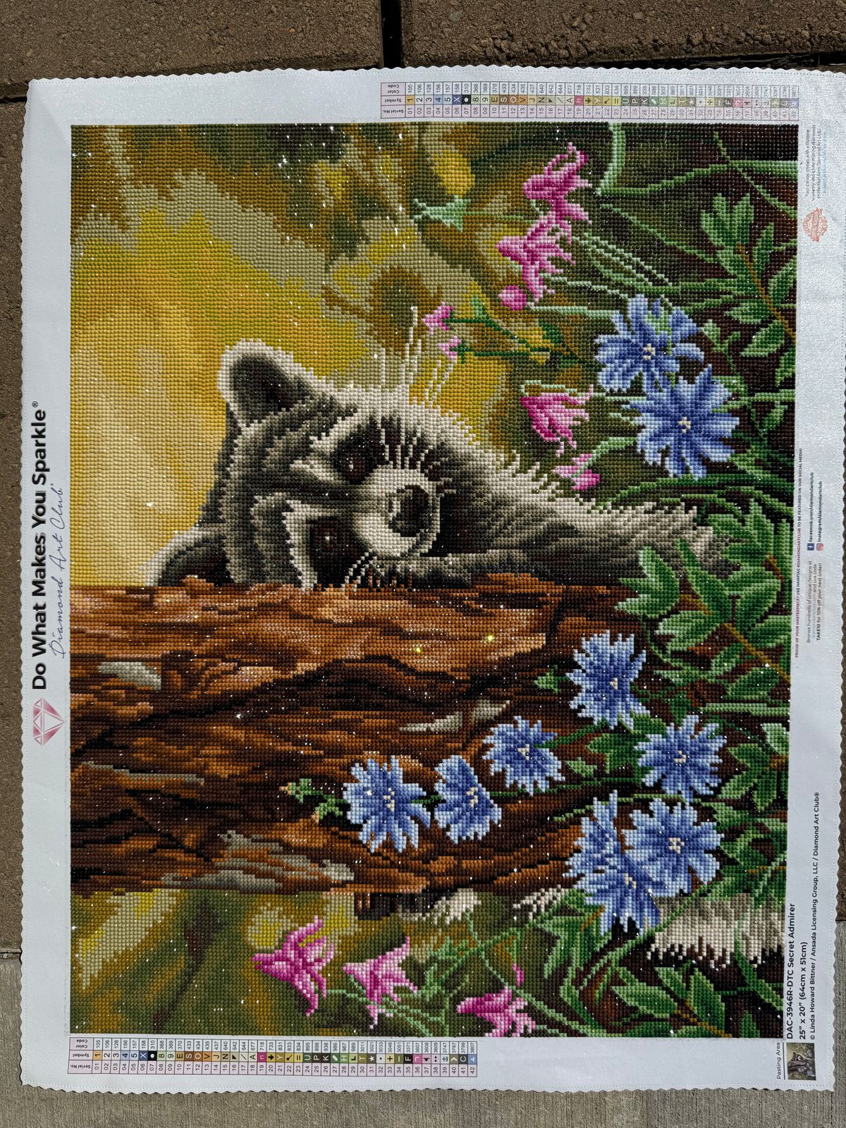 I love working on the raccoon. He too stinking cute! Painting very clear and love the colors.