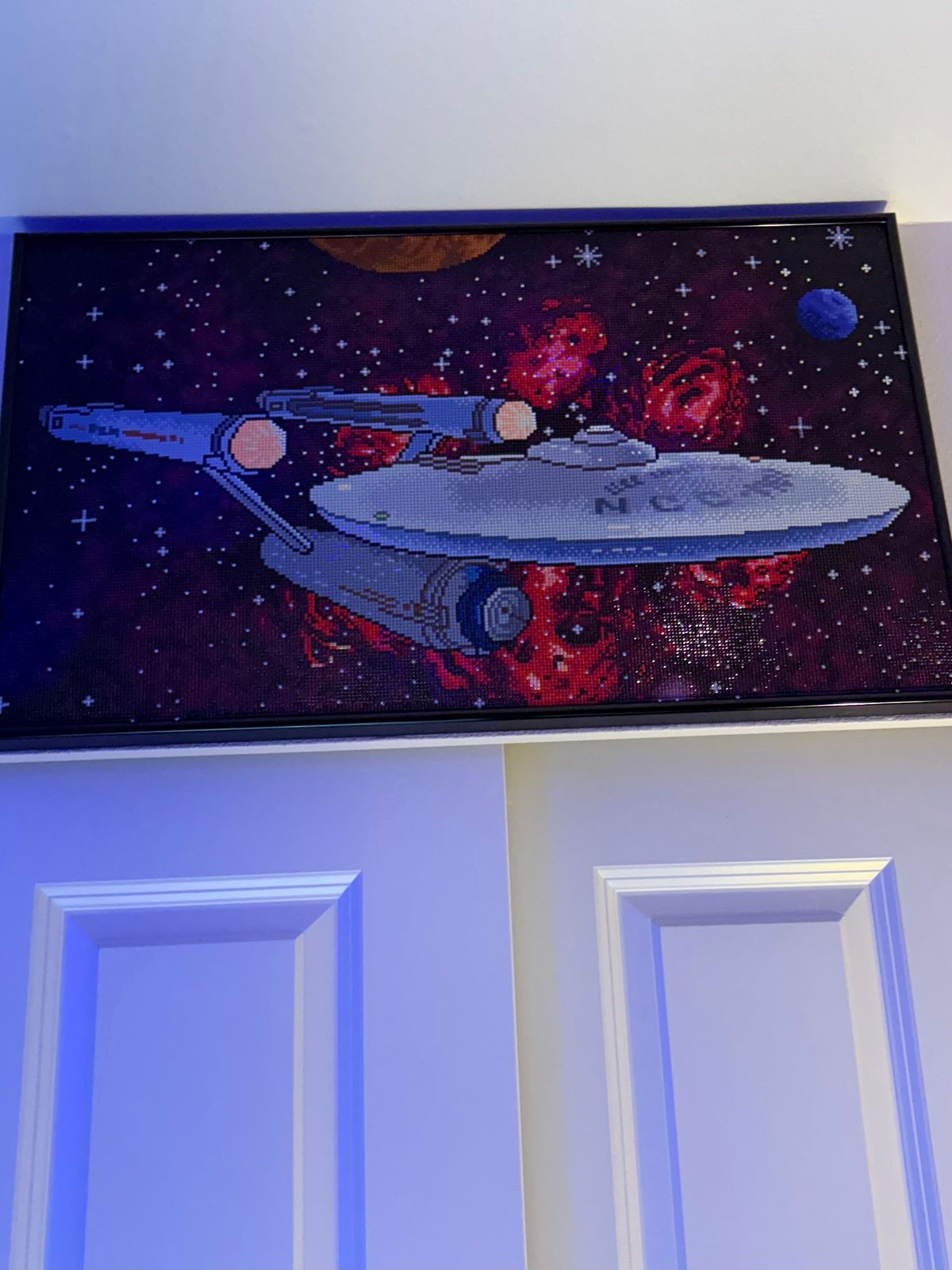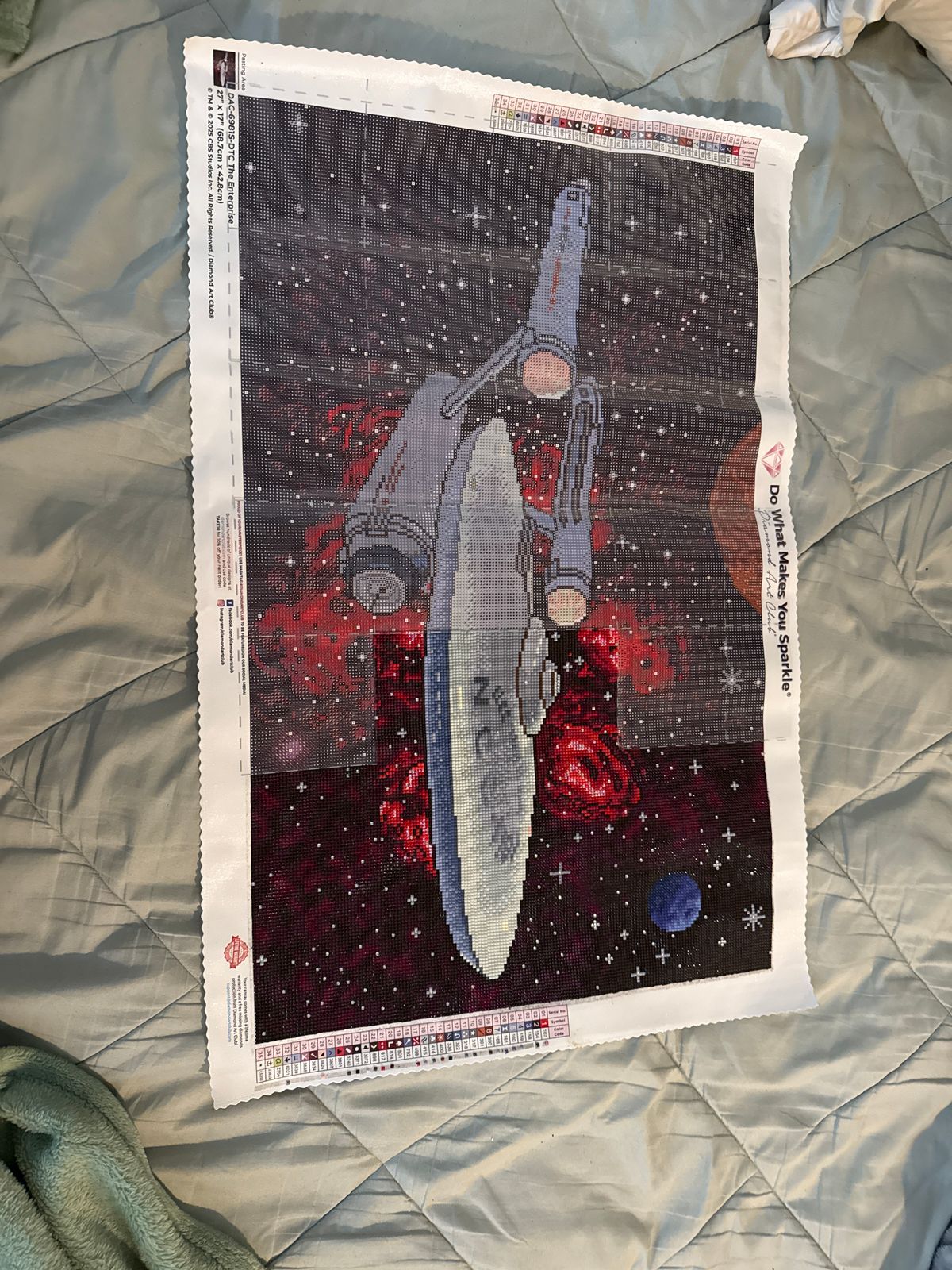 I am a third of the way through this diamond painting, and I am absolutely loving it. The drills are amazing quality very shiny. I love the diamond drills, the fairy dust drills and the AB drills. They are gorgeous. The canvas is sticky and I love the perforated cover plastic. The design itself is amazing and very clear not very pixelated. I would highly recommend this to any Star Trek lover