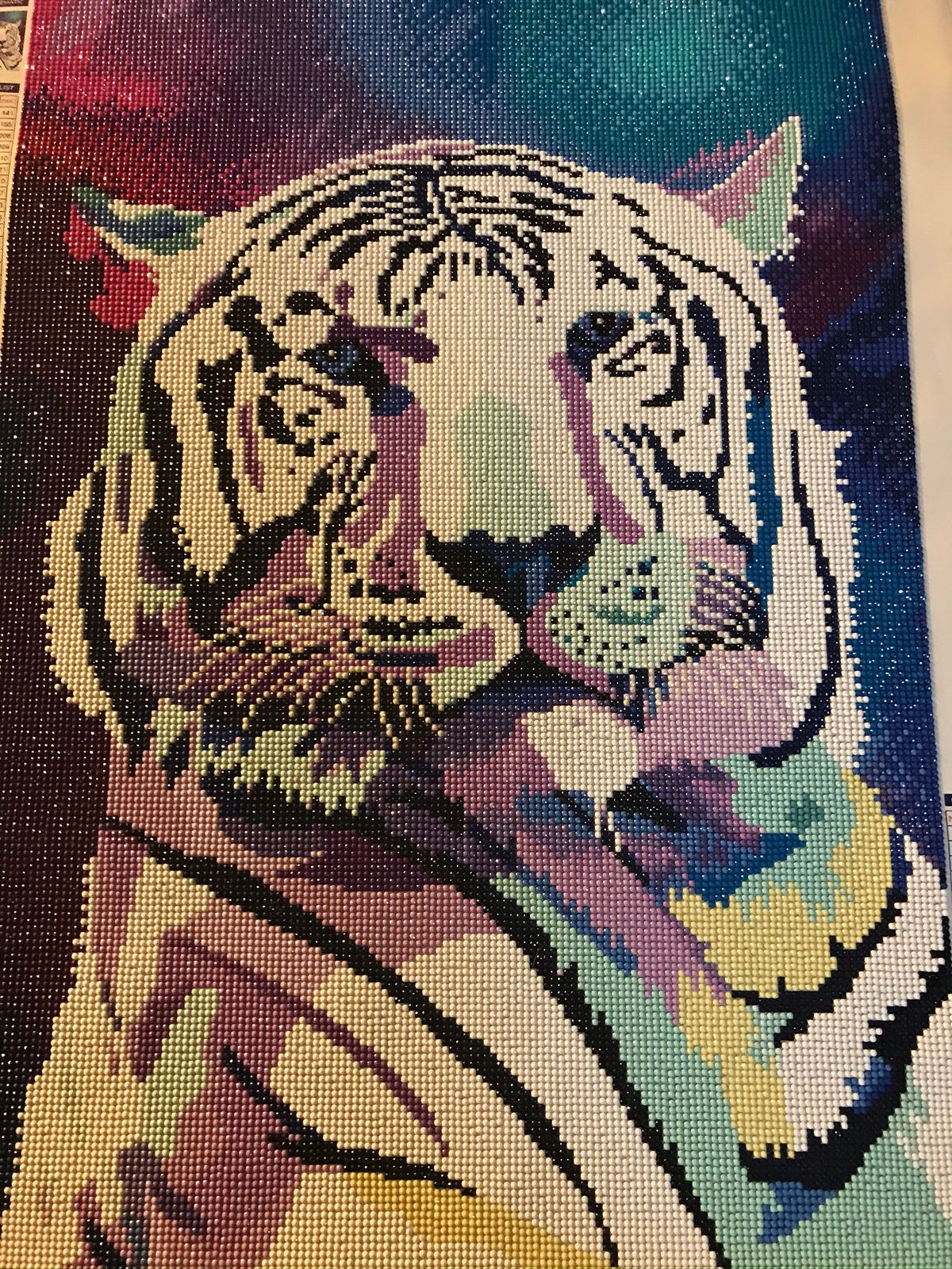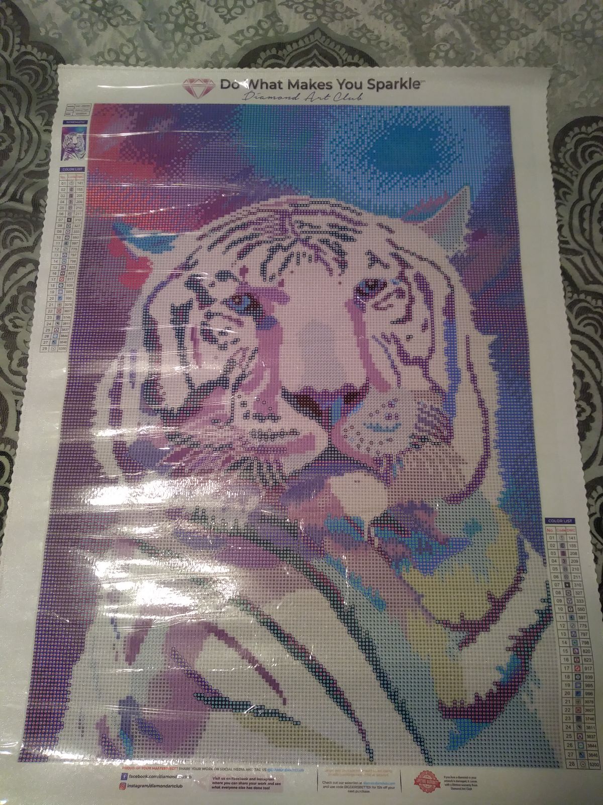 This Diamond Painting by Diamond Art Club™ allows you to create a vibrant, artistic portrait at home, using an easy diamond painting technique anyone can learn to do. This paint-by-numbers style artwork uses beautiful sparkling resin diamonds that you craft onto the canvas to make stunning, intricate designs. The artwork is printed on the canvas; all you have to do is follow the pattern and make your masterpiece shine!