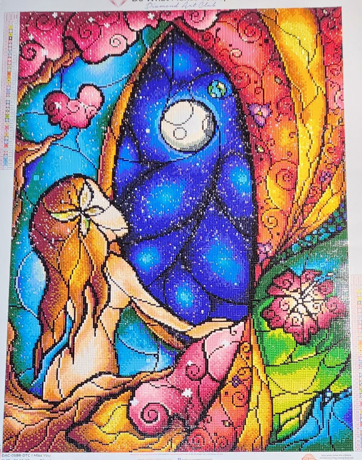 I purchased this canvas for two reasons - 1) I'm a fan of Mandie Manzano's work and 2) the title "I Miss You" spoke to my heart. The minute I saw it I knew it would be an amazing way to honor my memories of my husband who passed away in 2024. The colors are absolutely gorgeous and working on this canvas touched my heart is ways I cannot explain. As usual, DAC did not disappoint with the quality of the canvas, drills, and the rendering. This painting has brought me absolute joy!!
