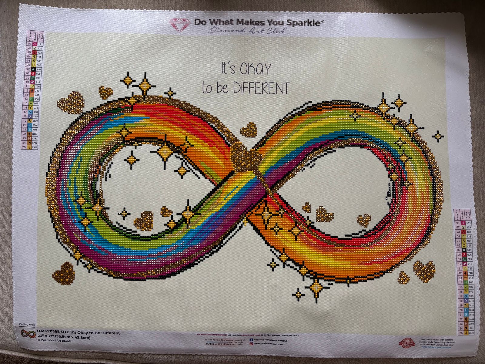 I love that DAC found artwork that has the infinity symbol rather than the puzzle pieces that are usually associated with autism. The rainbow colors are gorgeous and this kit has so many beautiful special drills…it was really fun to work on and the finished product is gorgeous. I’ll be hanging this up in my office since I work with autistic students.