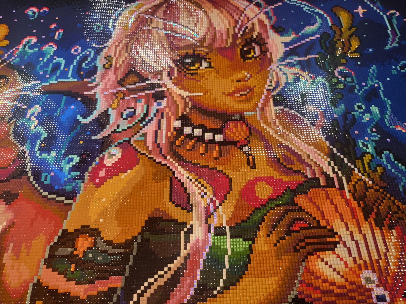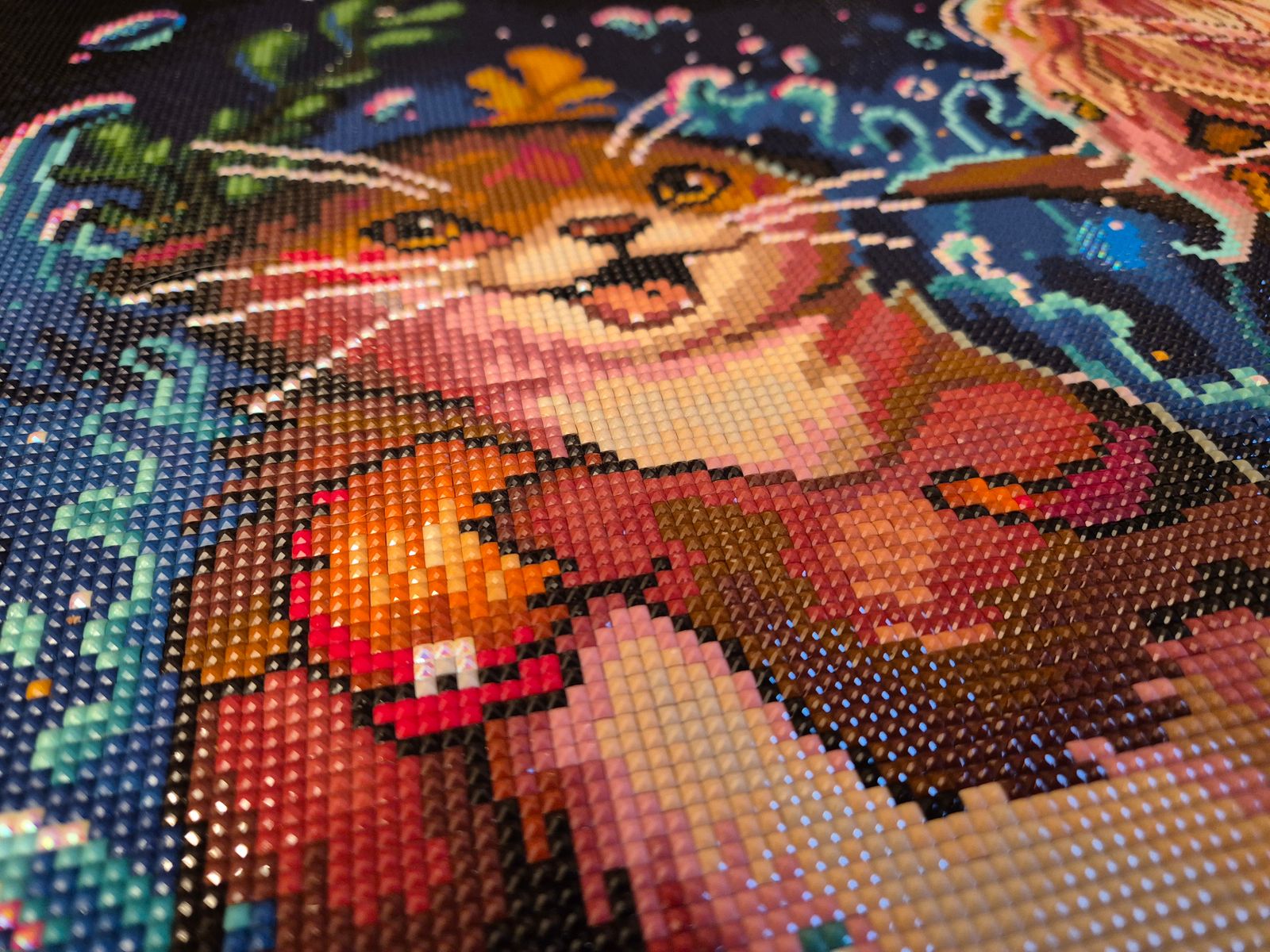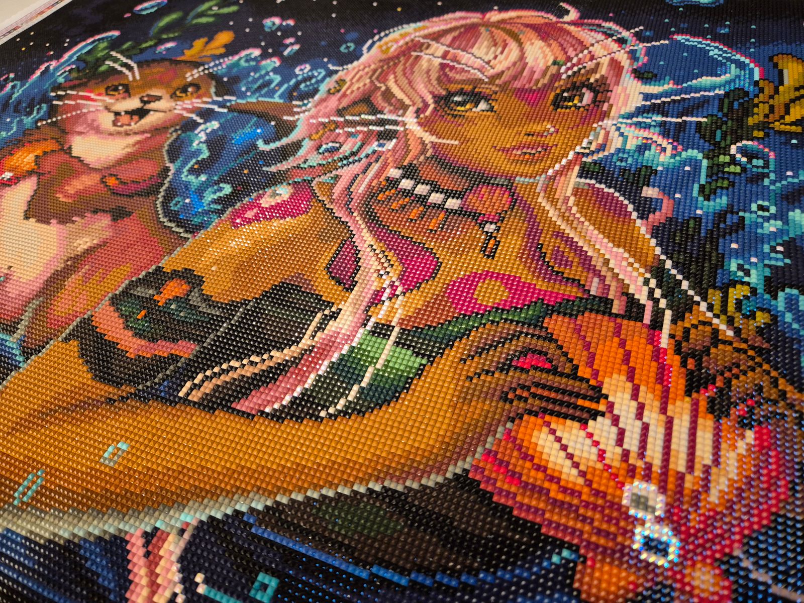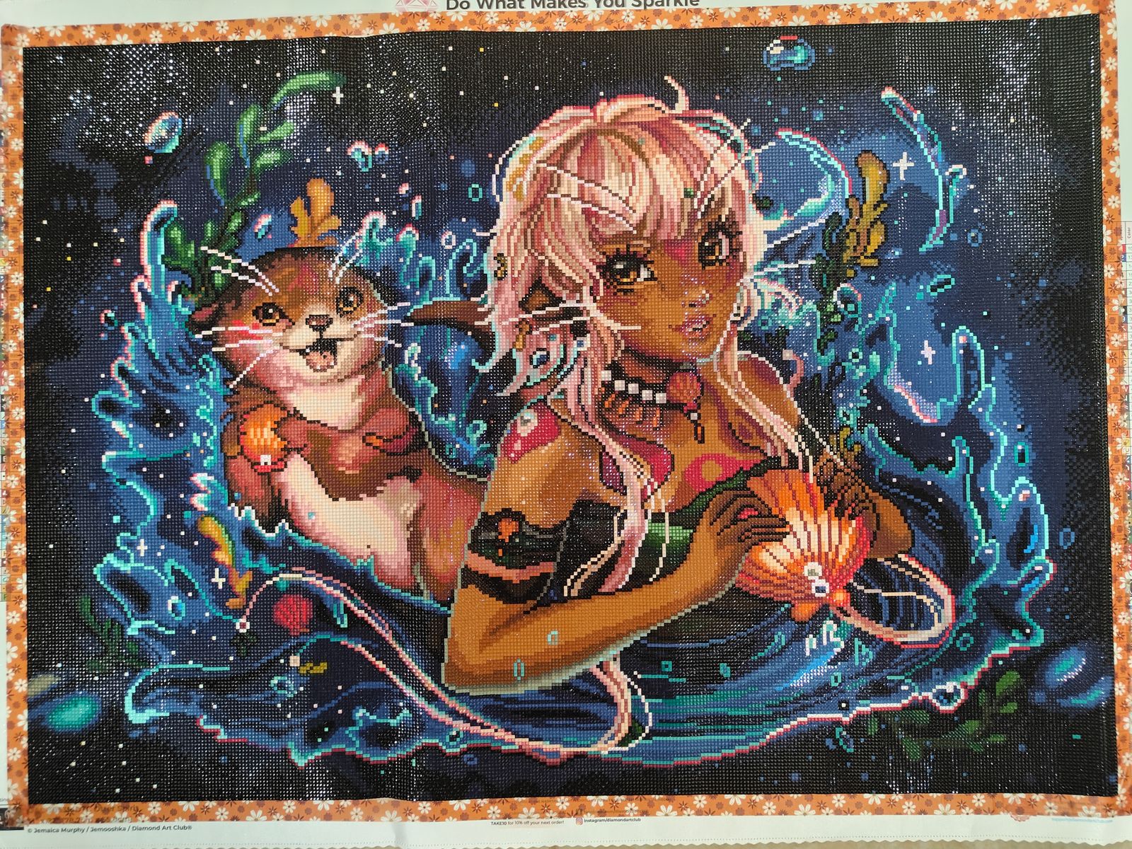 This was my first DAC painting and first time with squares. I loved every second of completing it! The quality of the drills and canvas is top notch. I made a few small changes to the image - removing the bubbles from her hair and the otter's stomach and a random dark spot on the otter's stomach. I couldn't be happier with this purchase and the artwork is beautiful.