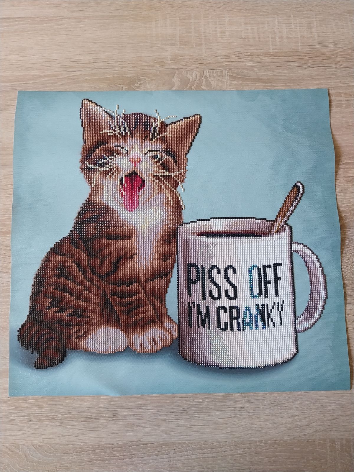 Diamond Painting Piss Off I'm Cranky Kitten 20" x 20″ (51cm x 51cm) / Square with 28 Colors including 4 ABs / 15,774