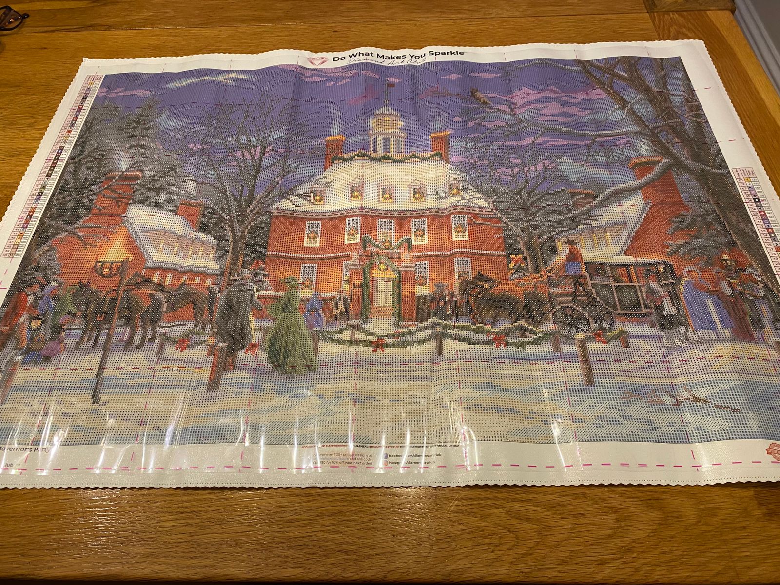 Almost half-way done. It is addictive. The quality of this very large piece is unmatched. I love this artwork. The colors are so bright and radiant. I definitely love the purple sky. I will for sure buy from DAC again in the future. Thank you
