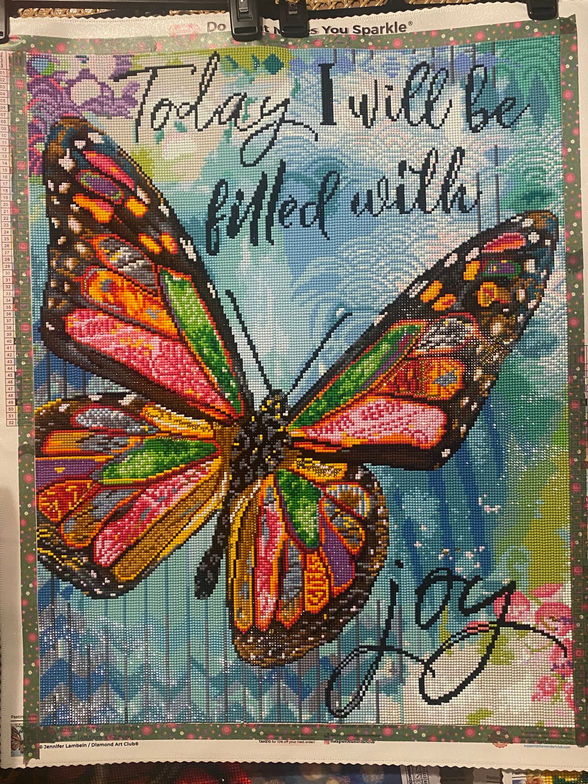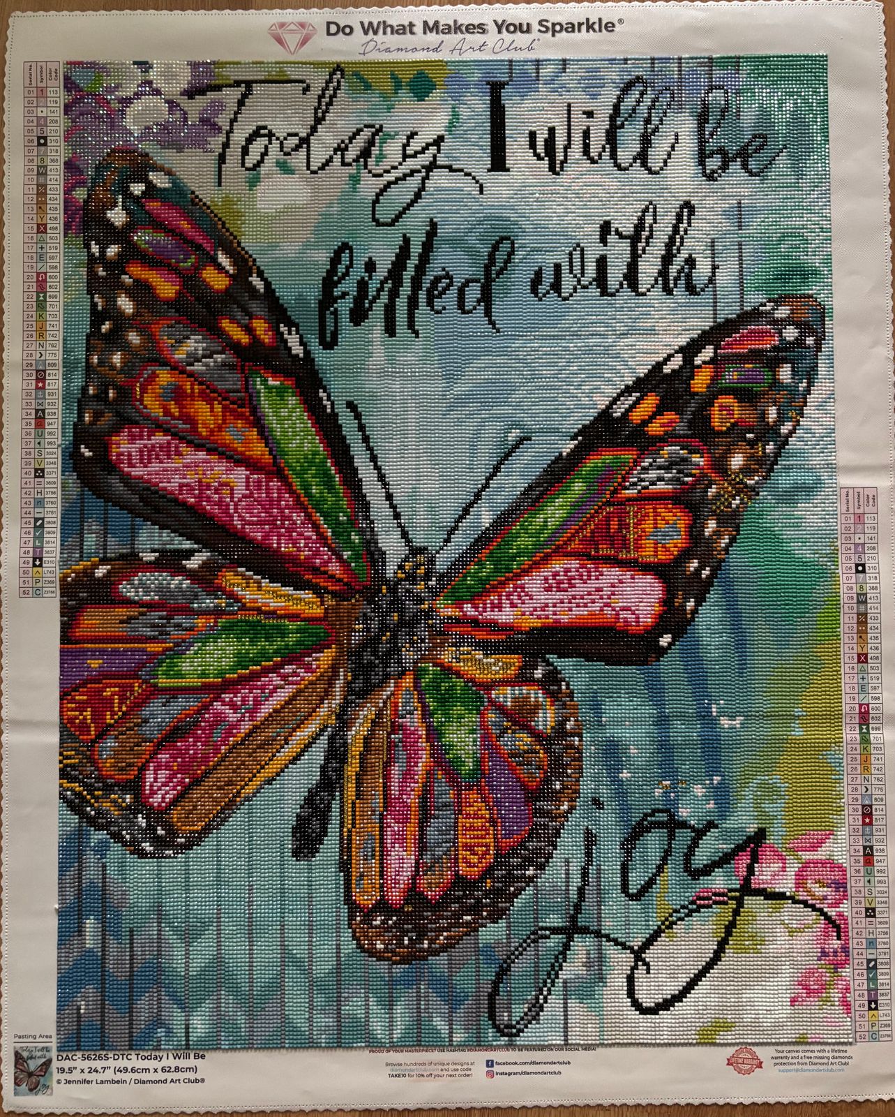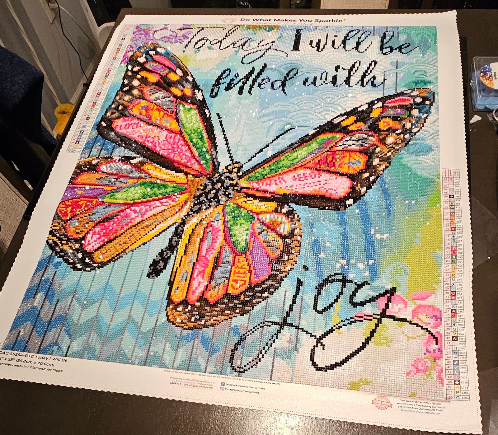This was such a fun canvas to work on. This is the 3rd Butterfly I have completed from this artist. The colors are amazing and the addition of a few square gold crystal diamonds added to this project really make this stand out. I had so much fun doing this project I completed in less than 12 days. Love this canvas.