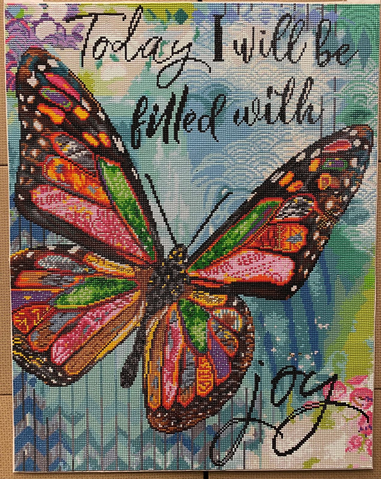Just finished this beautiful piece. The butterfly really comes alive!!