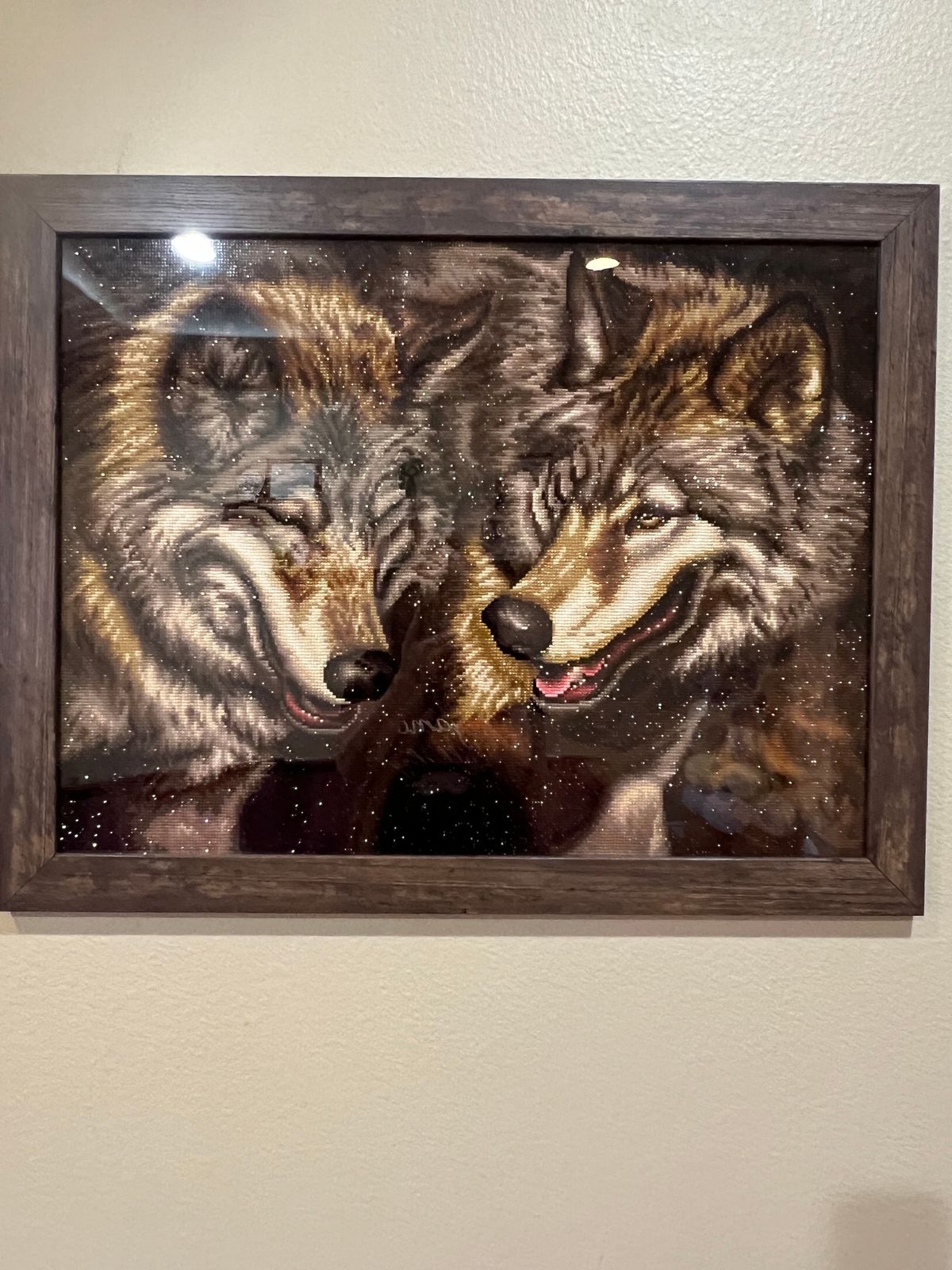 This painting is so realistic! It's so sparkly and was so much fun to do. I love the plastic film that is sectioned so you can tear it off and not have to cut it. Im waiting on the next wolf painting to be back in stock as I'm doing a room with Wolf paintings.
