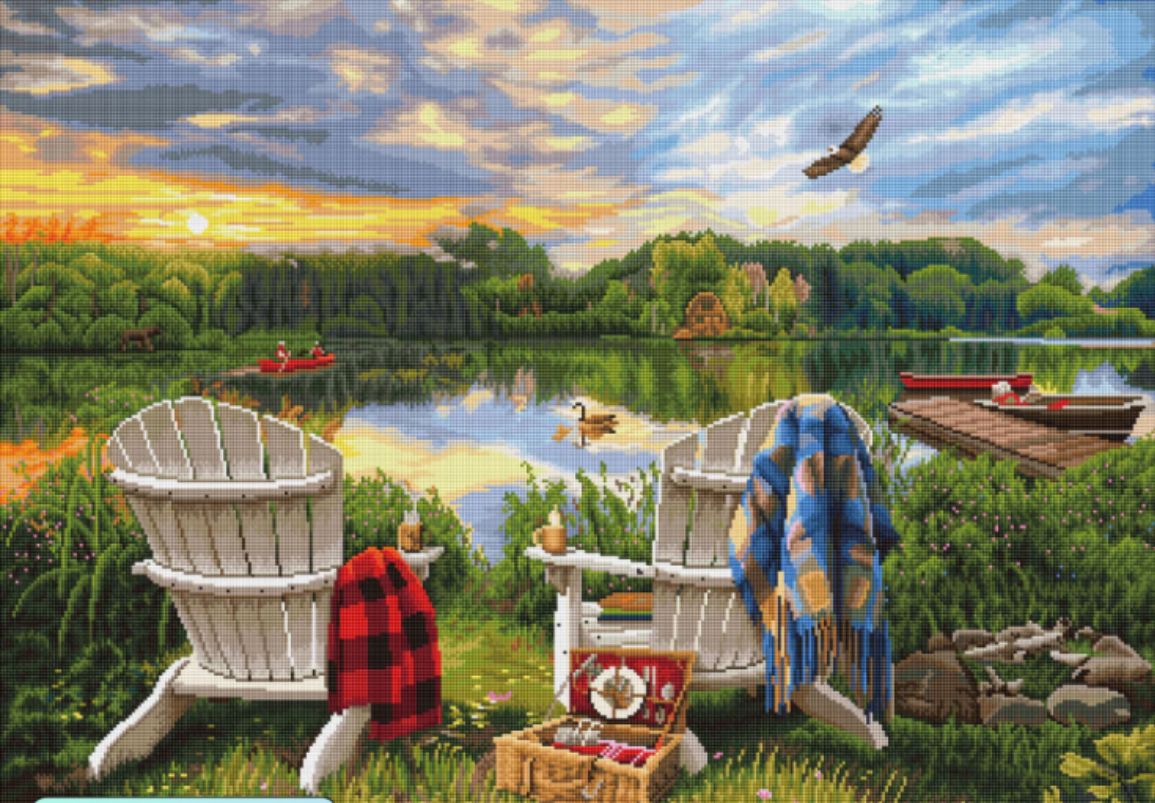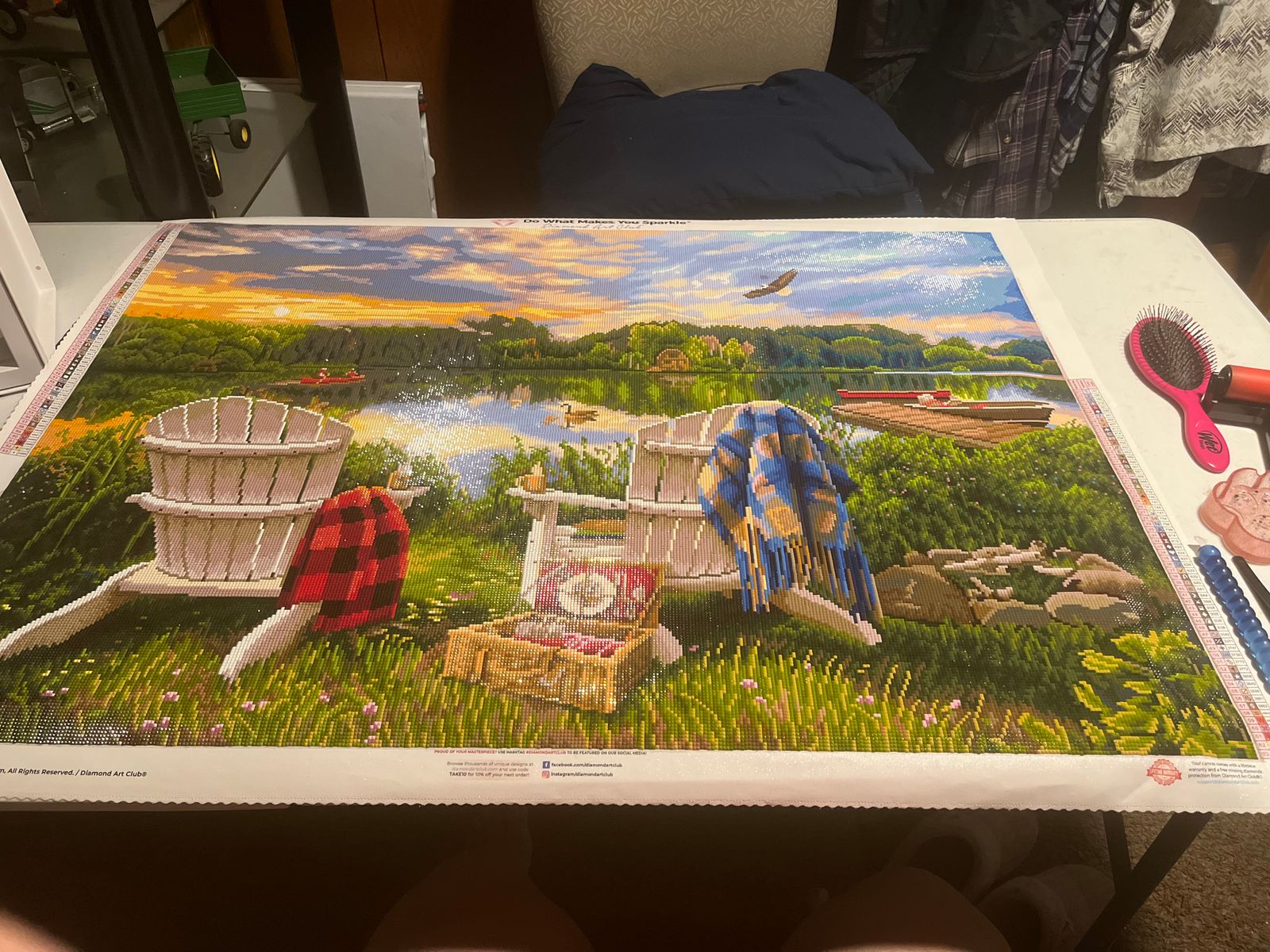 Gorgeous painting, fun to work on. Dreaming of sitting on those chairs someday. If you like larger paintings, this is a must have. As always, amazing quality and sparkle...love DAC!