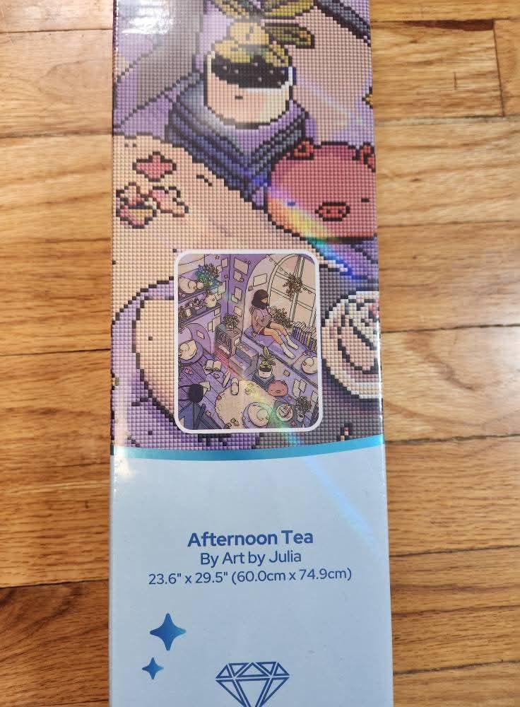 “Afternoon Tea” by Art by Julia is such a joy to work on! The colors are soft, feminine, and so beautifully balanced—it feels like a cozy, elegant day captured in diamonds. The rendering is perfect, with amazing detail that really brings the artwork to life. The drills are high quality and sparkle beautifully under the light, and the canvas is that usual Diamond Art Club perfection: sticky, easy to work with, and clearly printed.