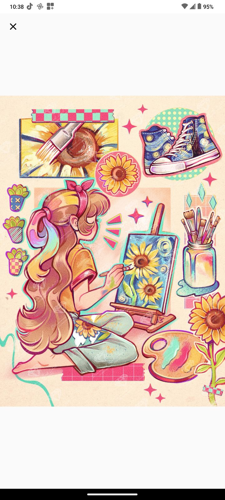 This beautiful painting I got it for my daughter … she loves art and this painting describes her …. She love it .. colors are stunning I love the artist of this canvas Mrs ButterD