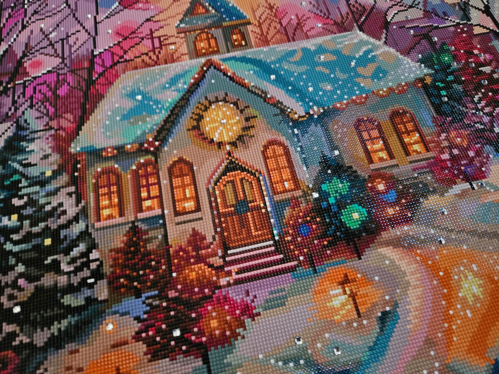 I did this for a diamond painting contest and absolutely loved doing it as it has quad drills which really added to the snowy vibe you are looking for. Overall a beautiful project.